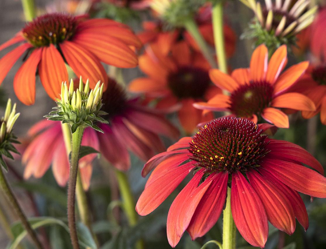 The 1960s brought color, optimism, and a belief that gardens, like people, could be forces for change. Vibrant chartreuse and pink foliage from Goldflame Spirea (Zones 4-9) sets the stage, joined by the sunny yellow blooms of Sunseekers® Golden Sun Coneflower (Zones 4-9) and the fiery orange spikes of Rocket Jr. Red Hot Poker (Zones 6-9). Pollinator-friendly, droughttolerant, and tough, these plants bring joyful energy and enduring performance to the garden.