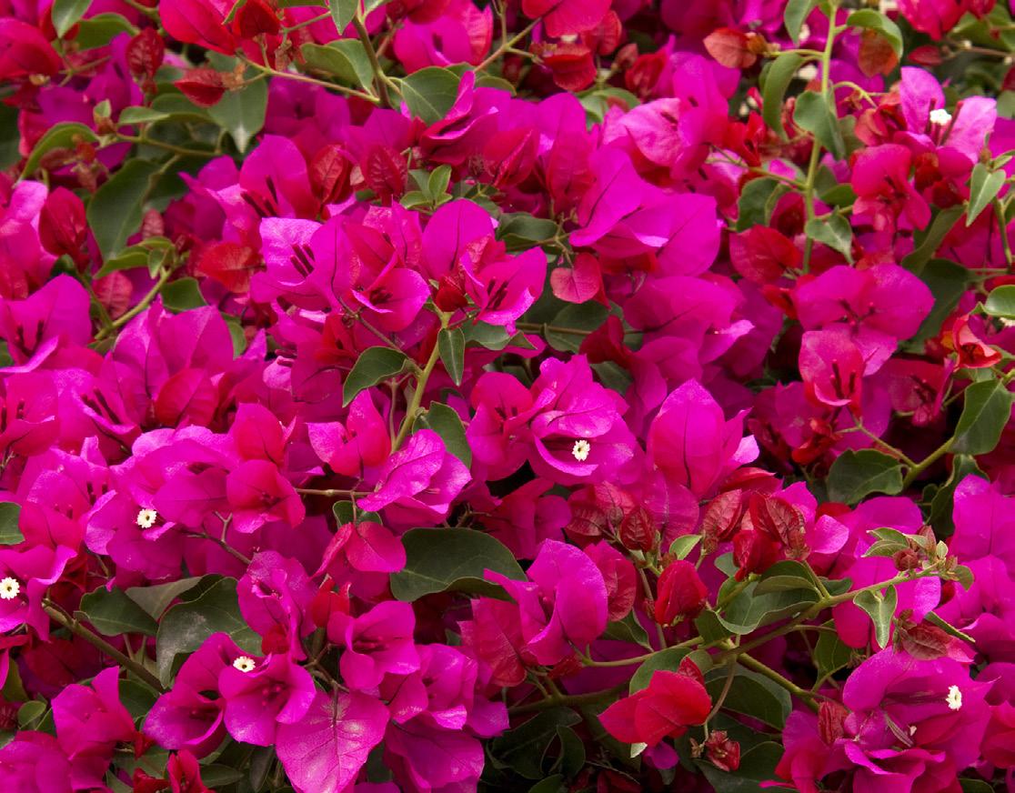 This palette channels the bold, anythinggoes energy of the highlighter hues from the 1990s. VIBE® Ignition Purple Salvia (Zones 7-11) sets the tone with vivid violet blooms, while Gold Coast® Pittosporum (Zones 7-11) delivers a jolt of lime-green foliage. Oo-LaLa® Bougainvillea (Zones 10-11, or grown as an annual) gets playful with hot pink, and the sunny yellow flowers of Chapel Hill Yellow Lantana (Zones 7-11) balance the look. Perfect for high-impact containers!