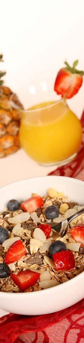 Una taza de cereal de tu preferencia 250ml de leche 10g de avena tostada 20g de frutos rojos 1 plátano en trozos