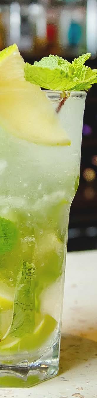 Echar en un vaso la hierbabuena con la azúcar, el jugo de un limón Triturar los tres ingredientes y mezclar bien, pero sin destrozar las hojas. Verter el hielo Añadir el ron y meclar bien Rellenar el espacio sobrante con el refresco Decorar con una ramita de menta, un gajo de limón y un popote.