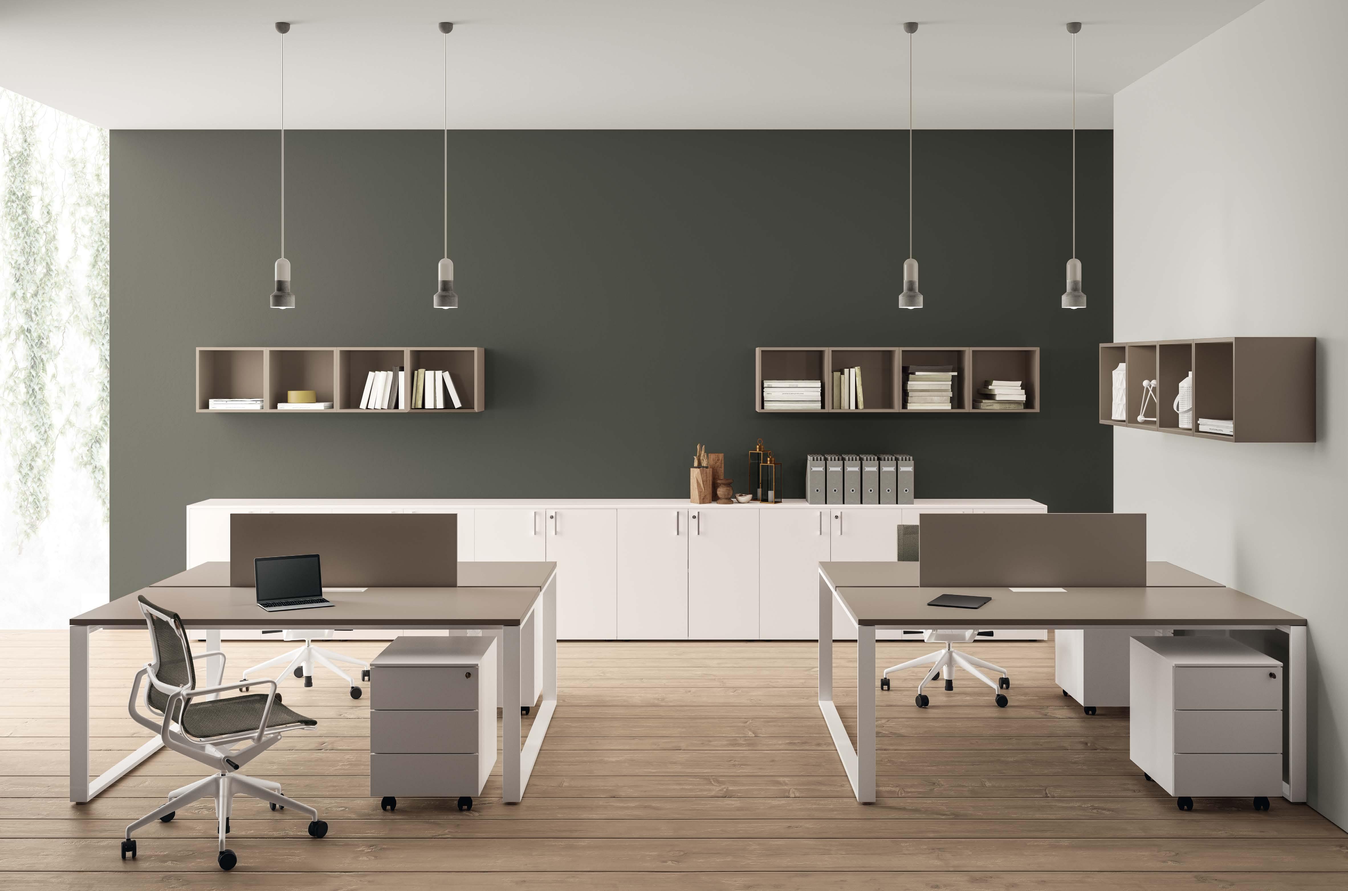Un innovativo sistema d’arredo che crea uno spazio di lavoro collaborativo che valorizza l’efficienza dei dipendenti. La protagonista, dal design sofisticato e moderno, è indubbiamente la scrivania, disponibile in sei strutture diverse e completamente personalizzabile combinando i numerosi materiali e i pregiati melaminici della gamma. L’ufficio raggiunge un equilibrio impeccabile risultando piacevole e accogliente, sia per chi opera in postazione singola, che in team, alla reception o al call center.