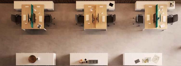 Un système d’ameublement novateur qui crée un espace de travail collaboratif et qui stimule l’efficacité des salariés. L’acteur principal, au design sophistiqué et moderne, est indubitablement le bureau qui se décline en six structures différentes et entièrement personnalisables, alliant les nombreux matériaux et les mélaminés de qualité supérieure de la gamme. Le bureau atteint un équilibre parfait et devient agréable et accueillant, tant pour le travailleur seul à son poste que pour l’équipe de la réception ou du call center.