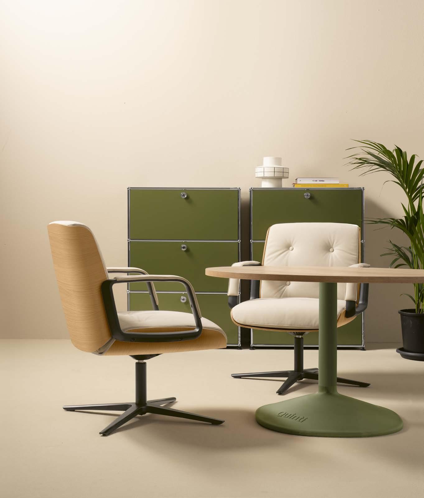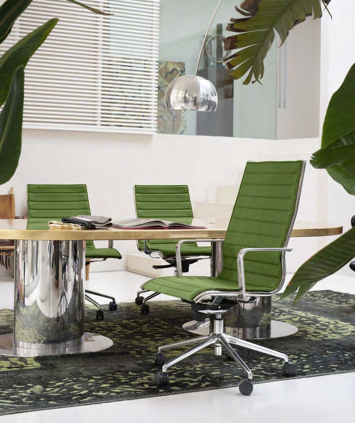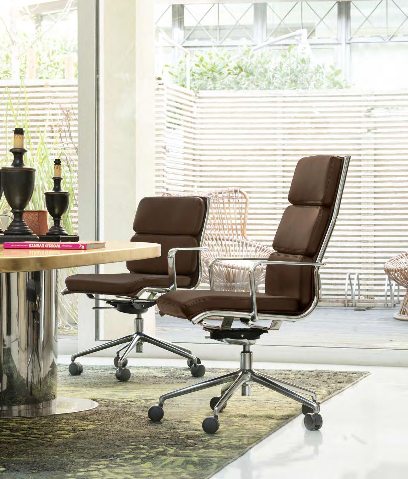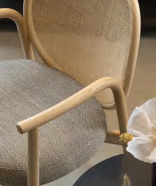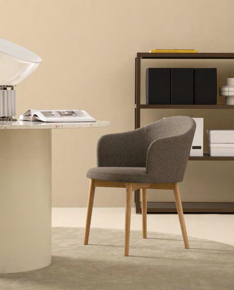 The armrests in metal, wood or upholstered integrate the body discreetly and elegantly.