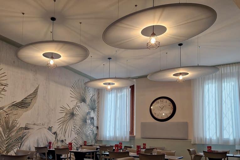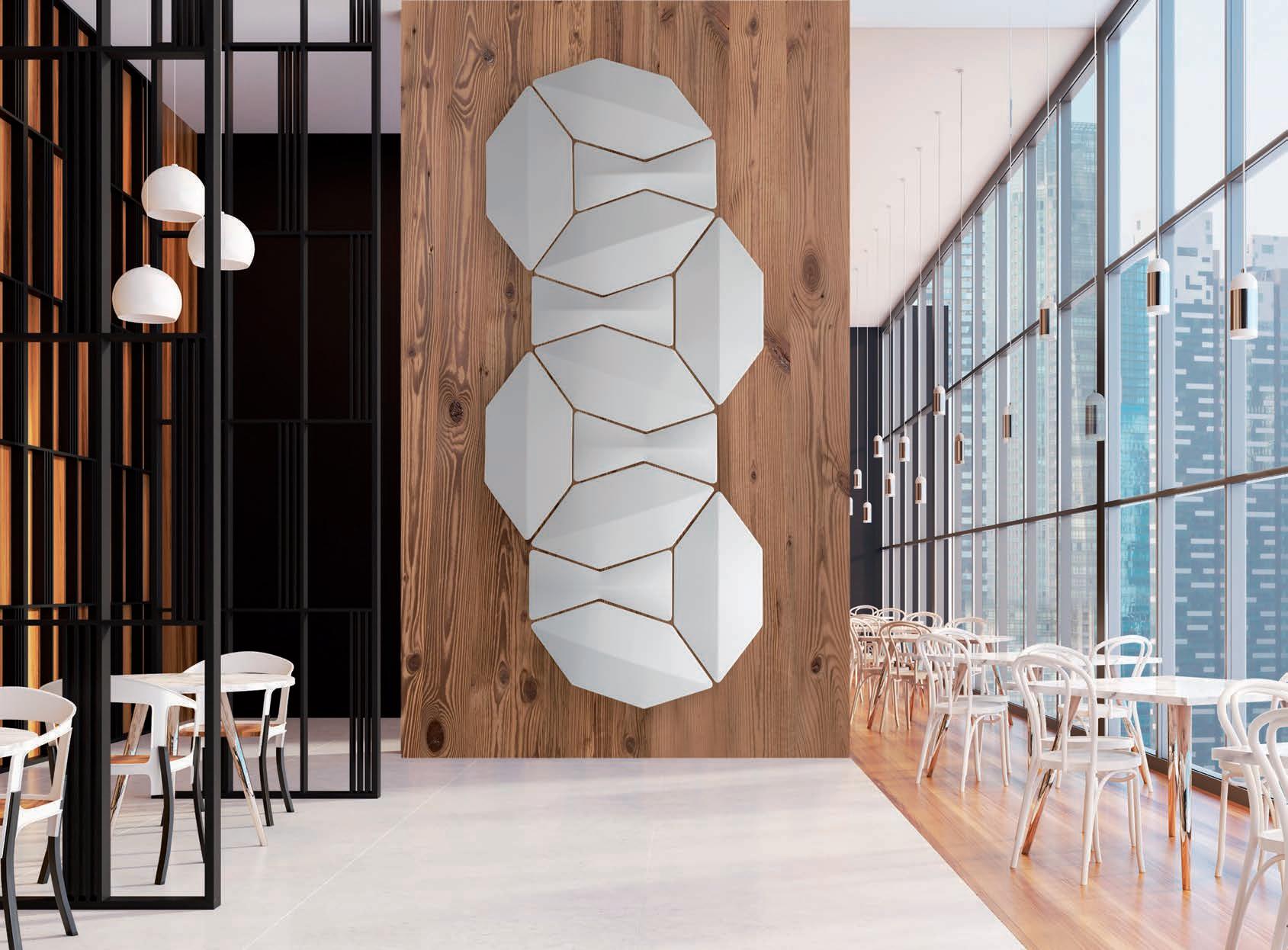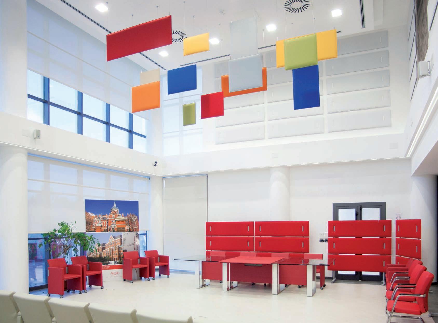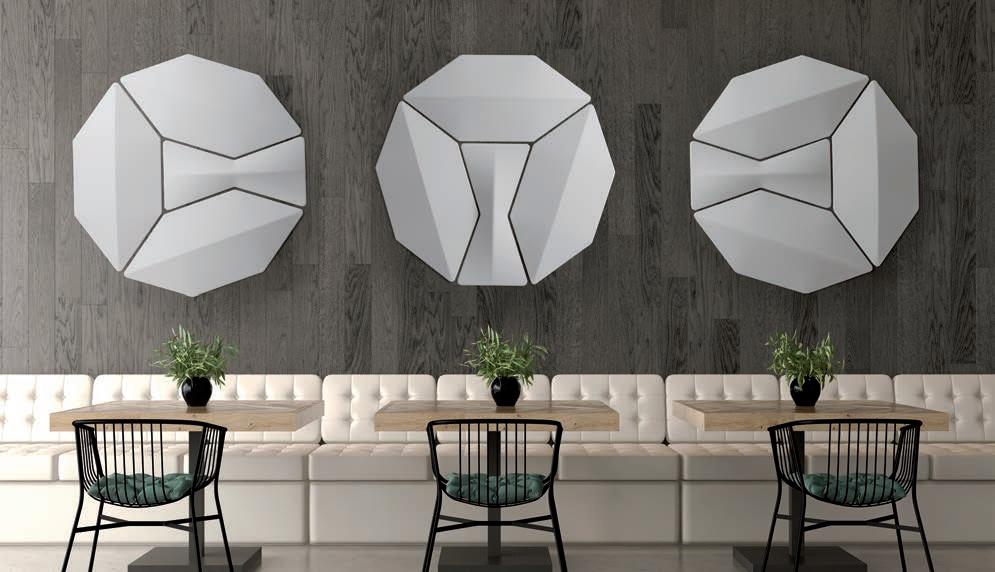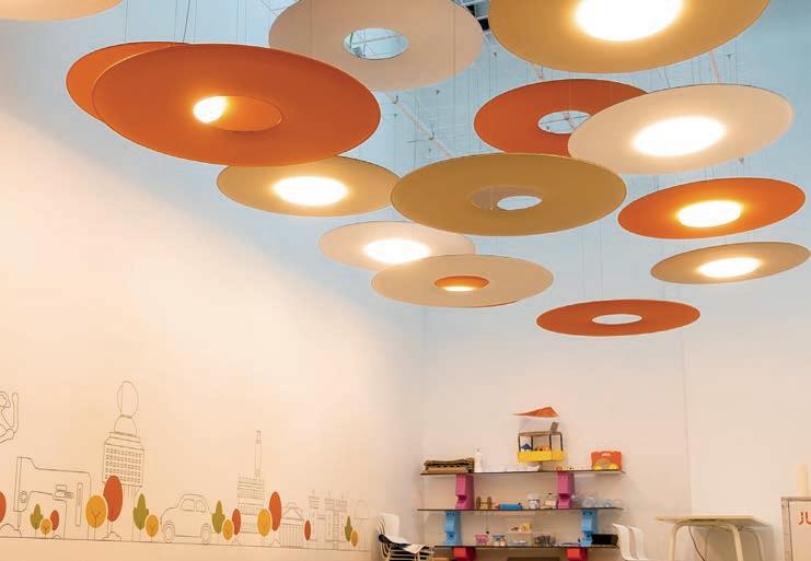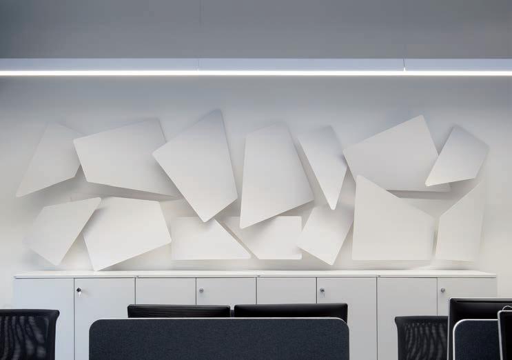 E_Las prestaciones acústicas de Snowsound se plasman en los proyectos de diseñadores afamados. Un sinfín de formas y colores concebidos tanto para ser parte visible que caracteriza el proyecto, como también elemento que se integra con discreción en su entorno. Solucionar los problemas acústicos, de los más sencillos a los más complejos, con una gama integrada de productos basados en un enfoque muy innovador.
