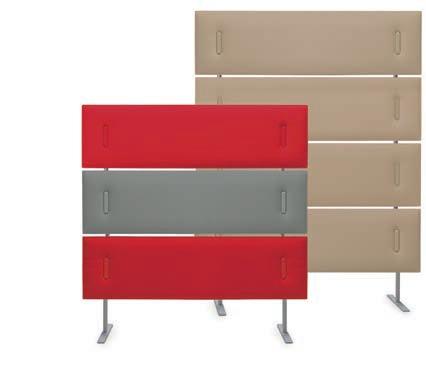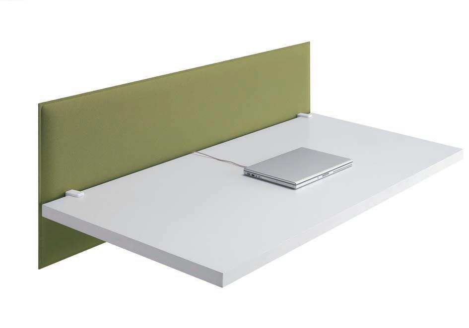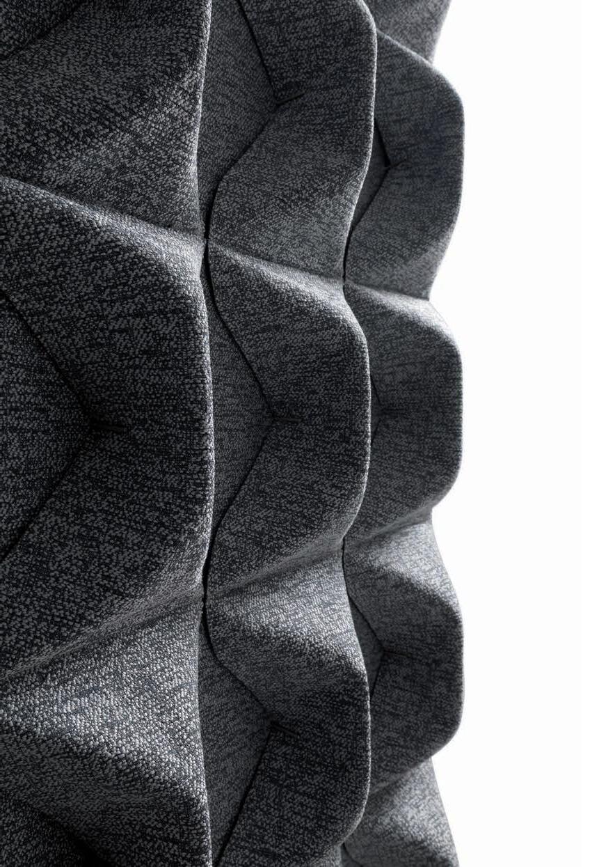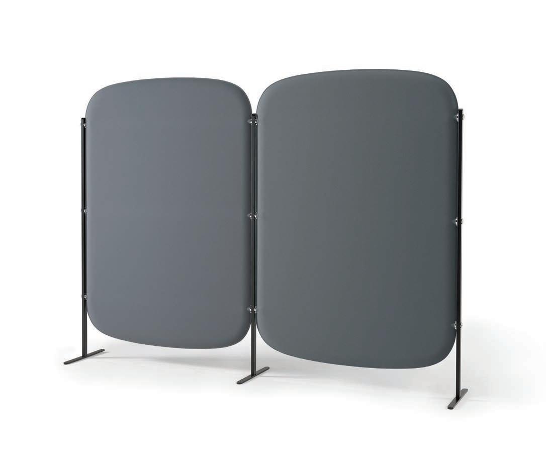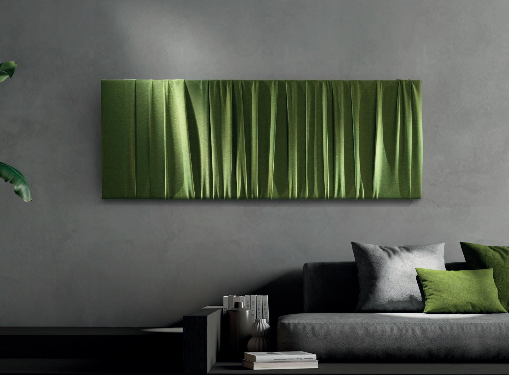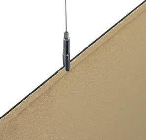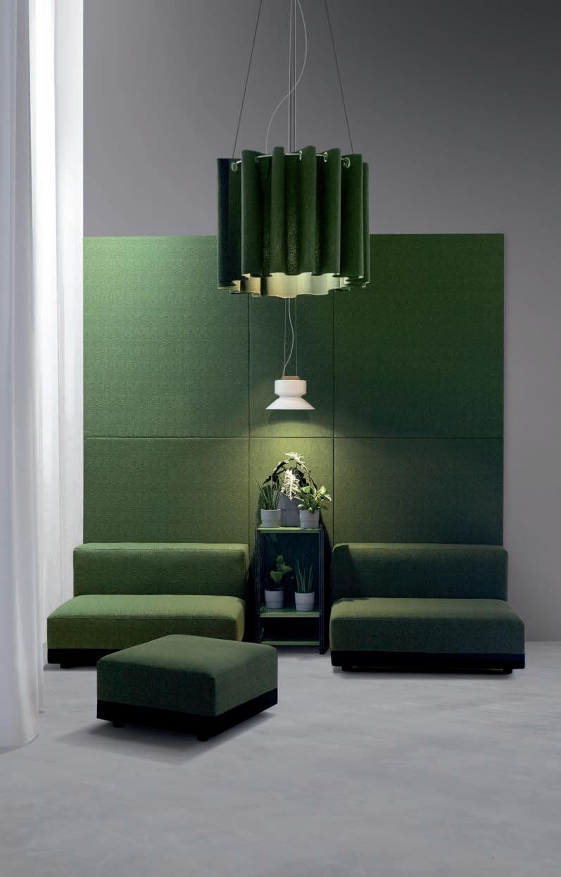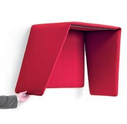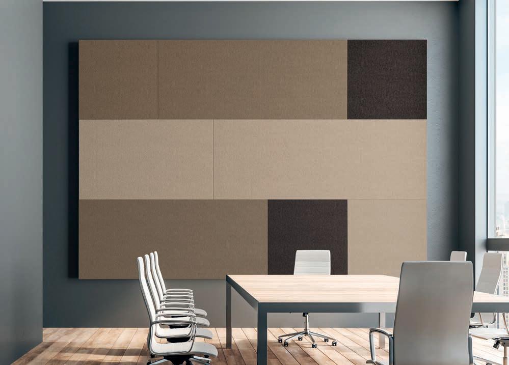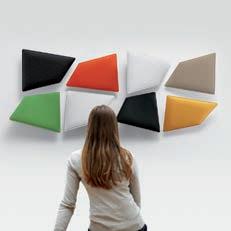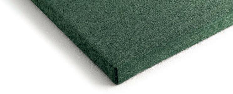E Las superficies del panel están tapizadas en tejido de poliéster Trevira CS® firmemente aplicada al relleno interno con el cual forma un cuerpo único, sin solución de continuidad. Propiedad que permite obtener una superficie que, aún siendo visualmente muy soft, resulta ser resistente, difícil de arrancar y perforar.