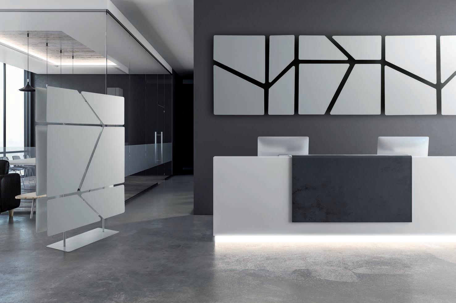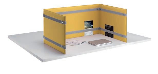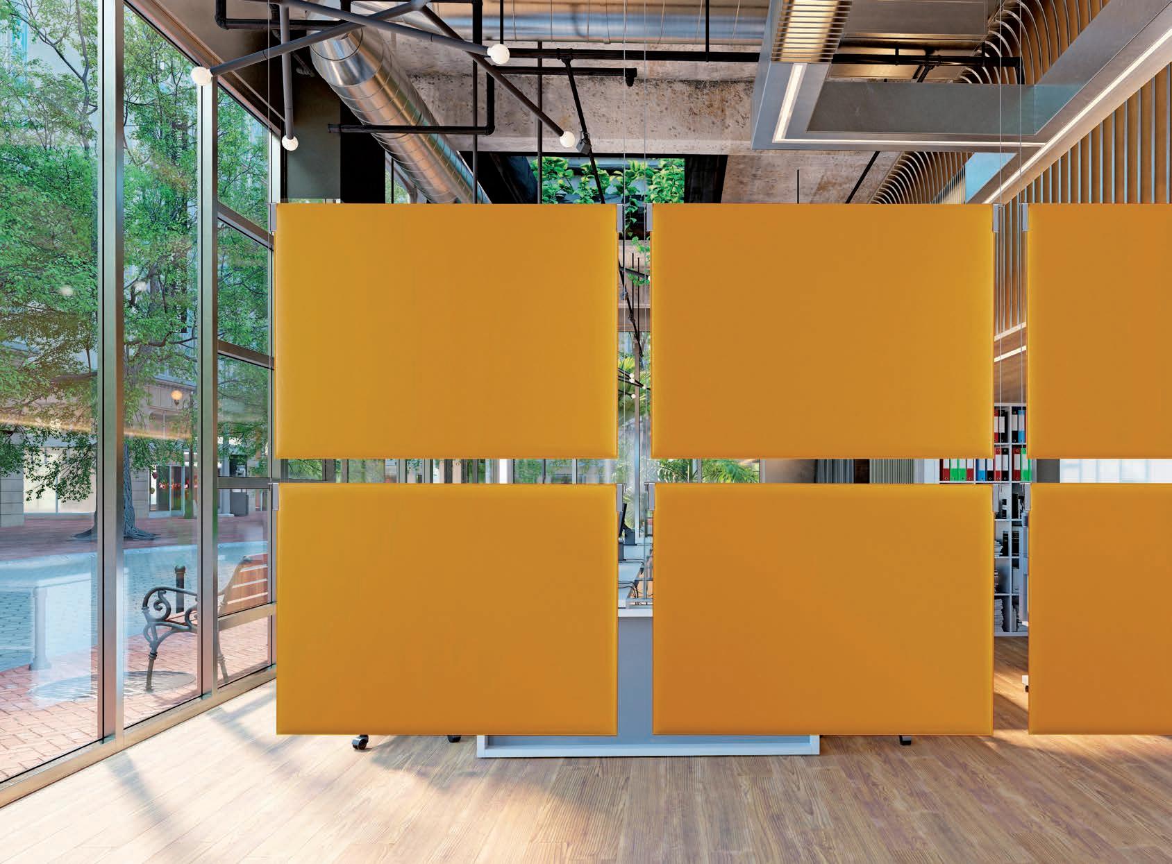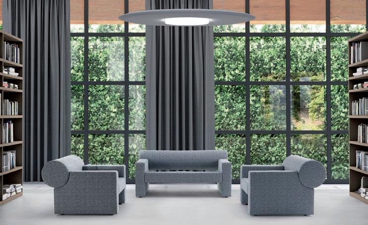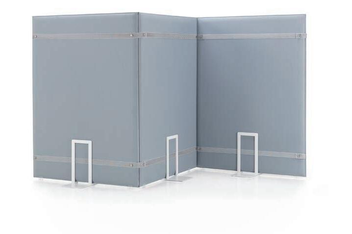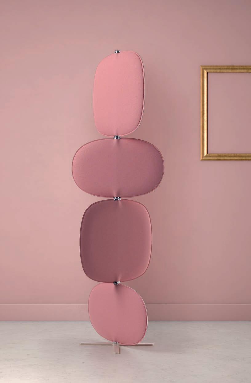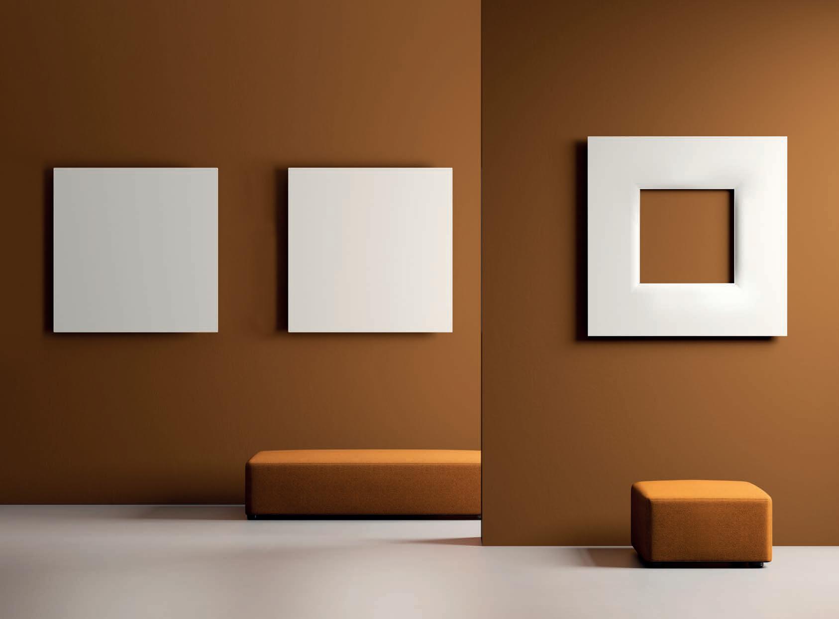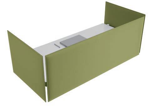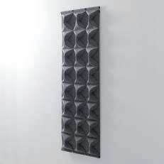 E Las superficies del panel están tapizadas en tejido de poliéster Trevira CS® firmemente aplicada al relleno interno con el cual forma un cuerpo único, sin solución de continuidad. Propiedad que permite obtener una superficie que, aún siendo visualmente muy soft, resulta ser resistente, difícil de arrancar y perforar.