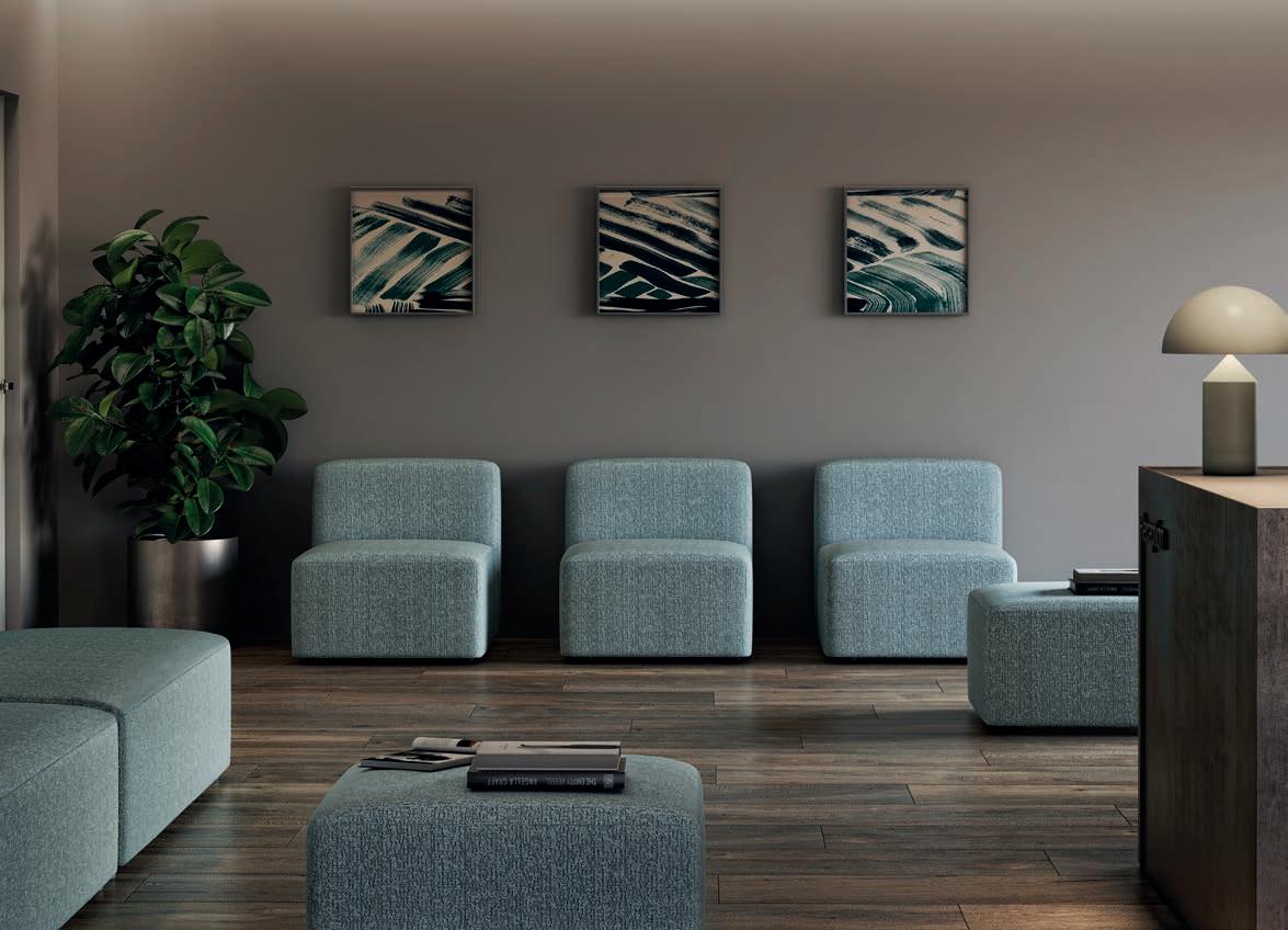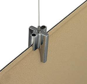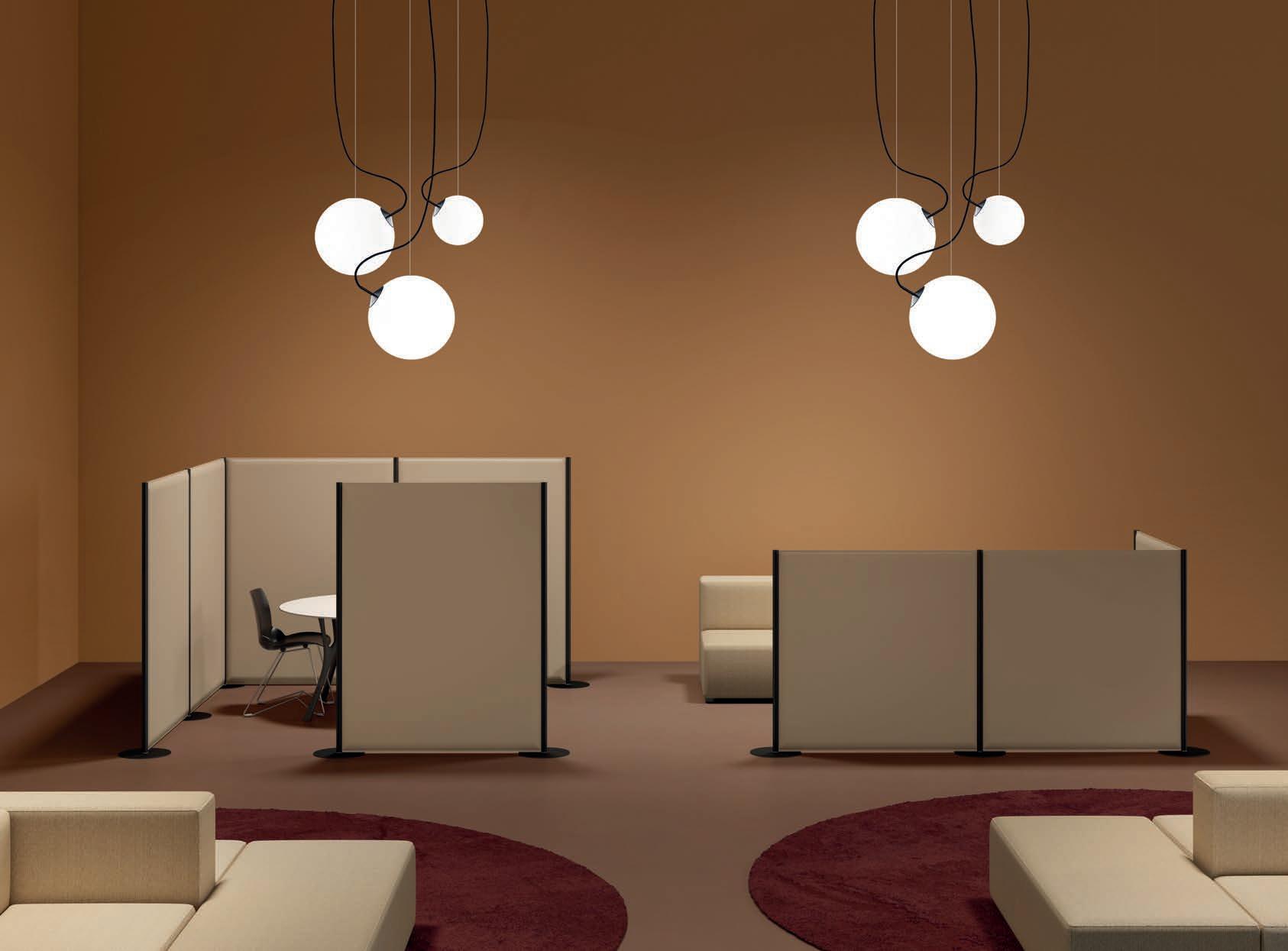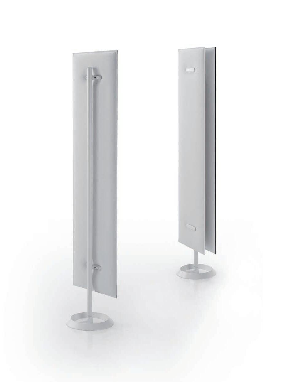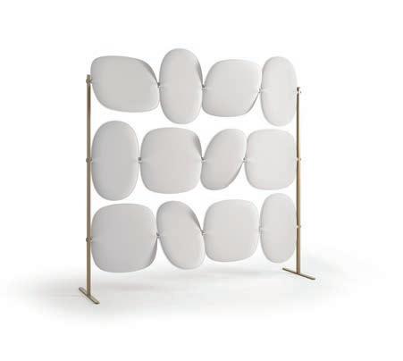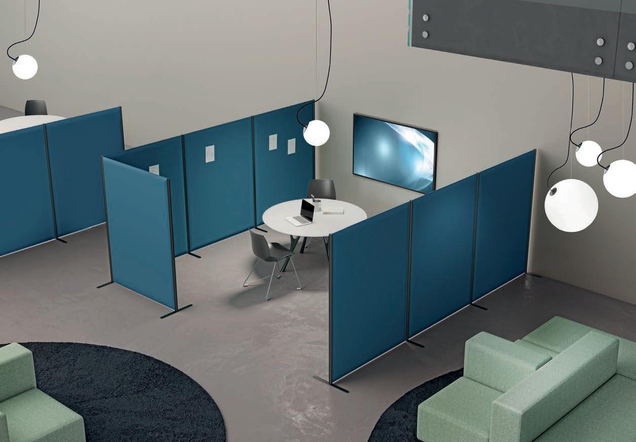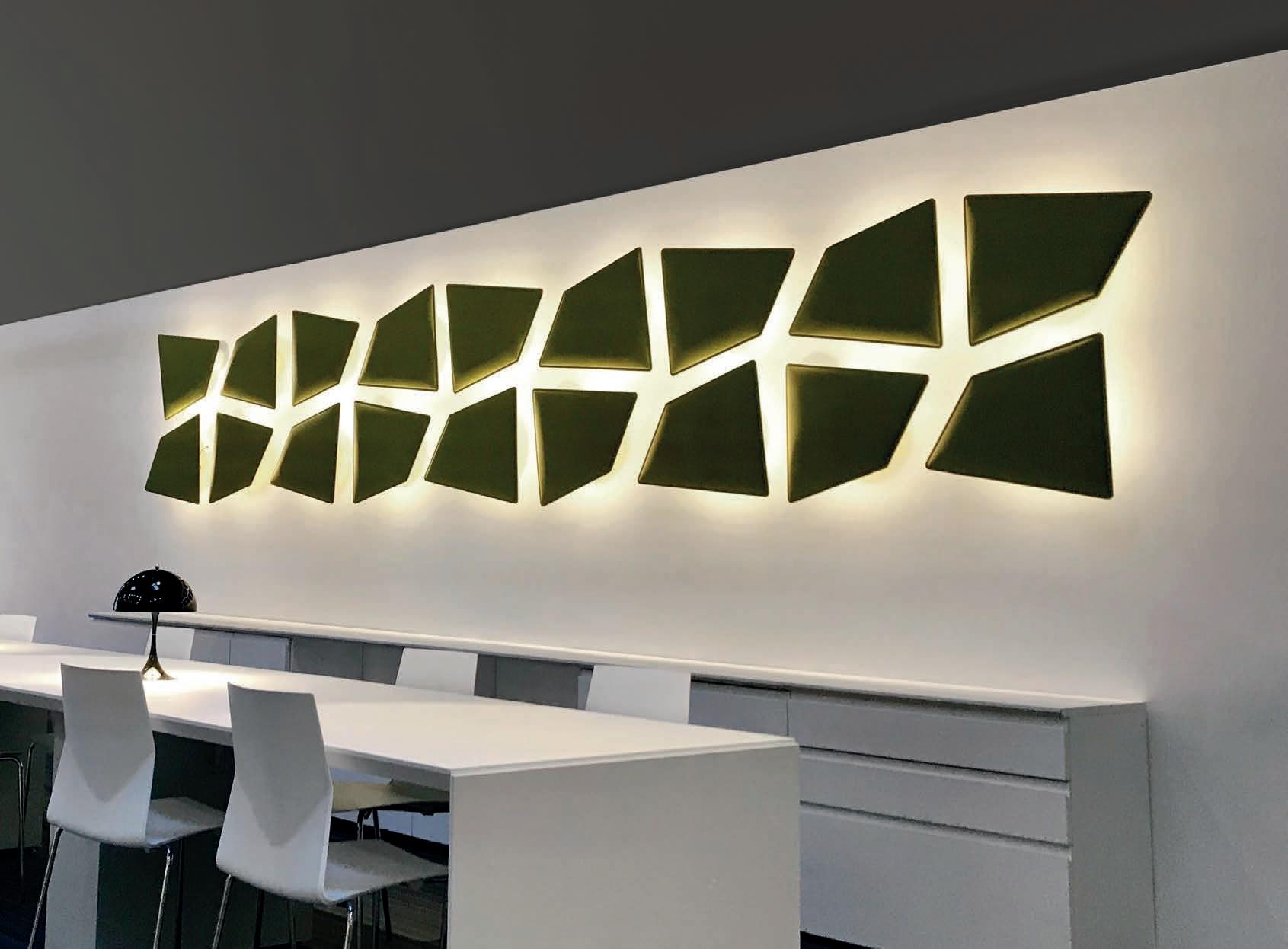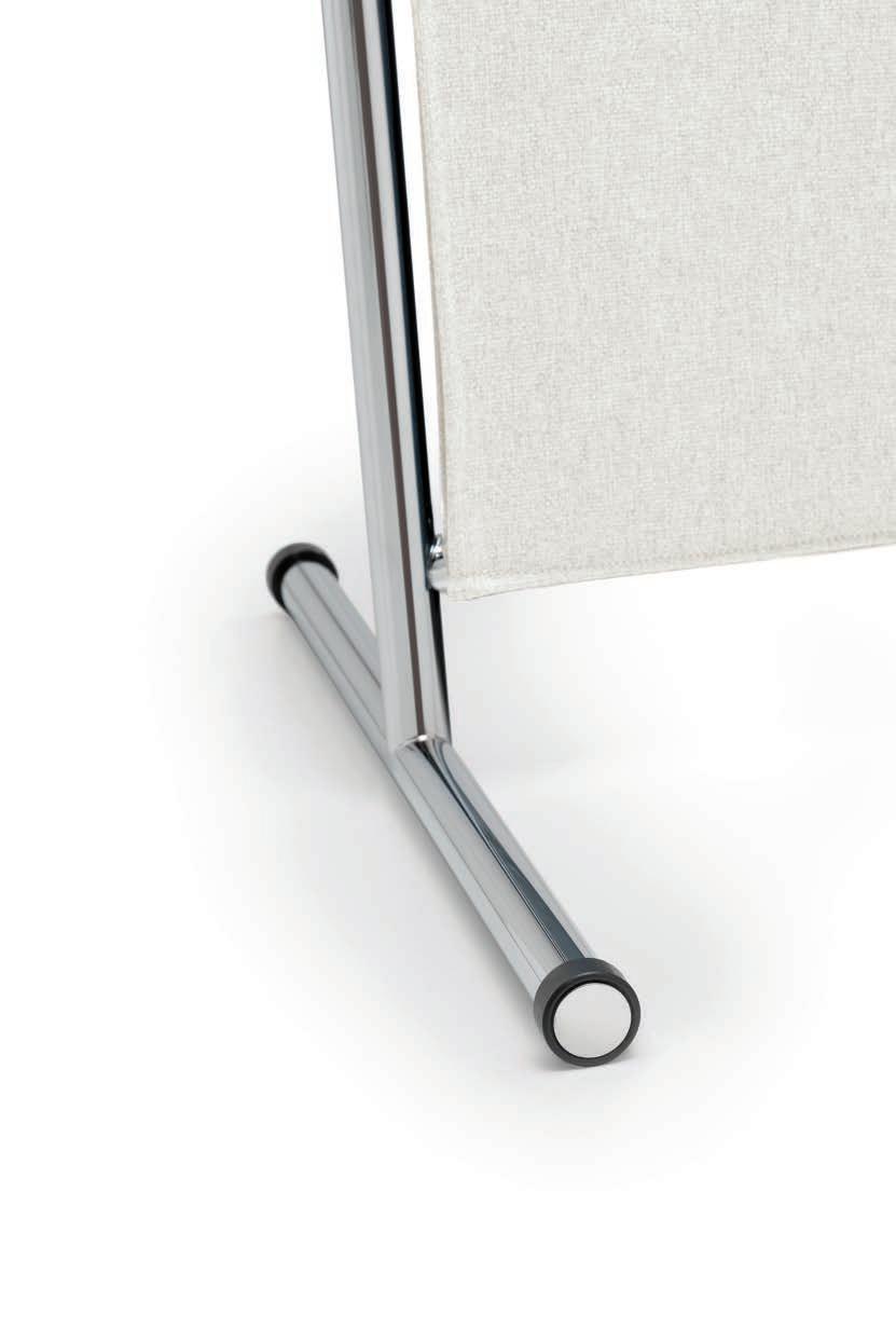 E Las superficies del panel están tapizadas en tejido de poliéster Trevira CS® firmemente aplicada al relleno interno con el cual forma un cuerpo único, sin solución de continuidad. Propiedad que permite obtener una superficie que, aún siendo visualmente muy soft, resulta ser resistente, difícil de arrancar y perforar.
