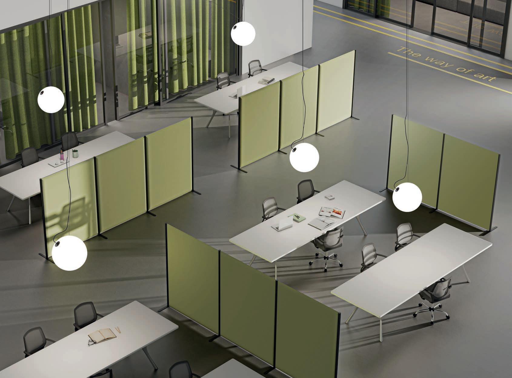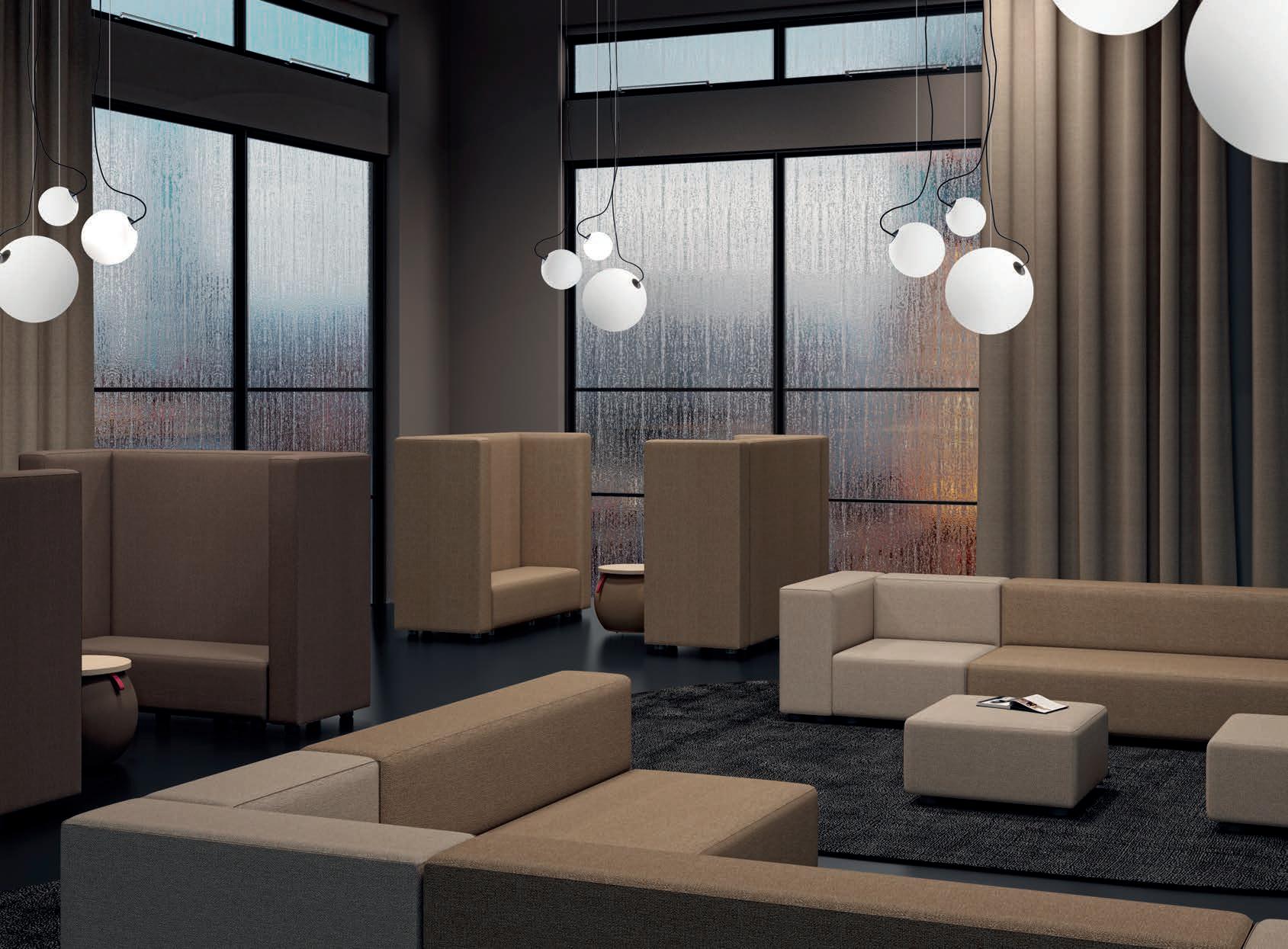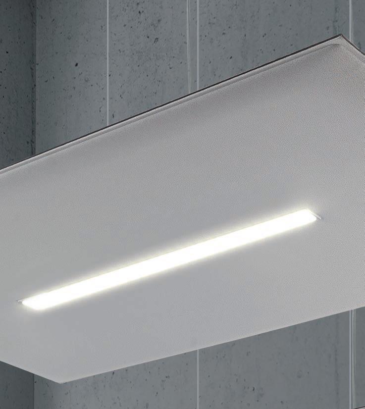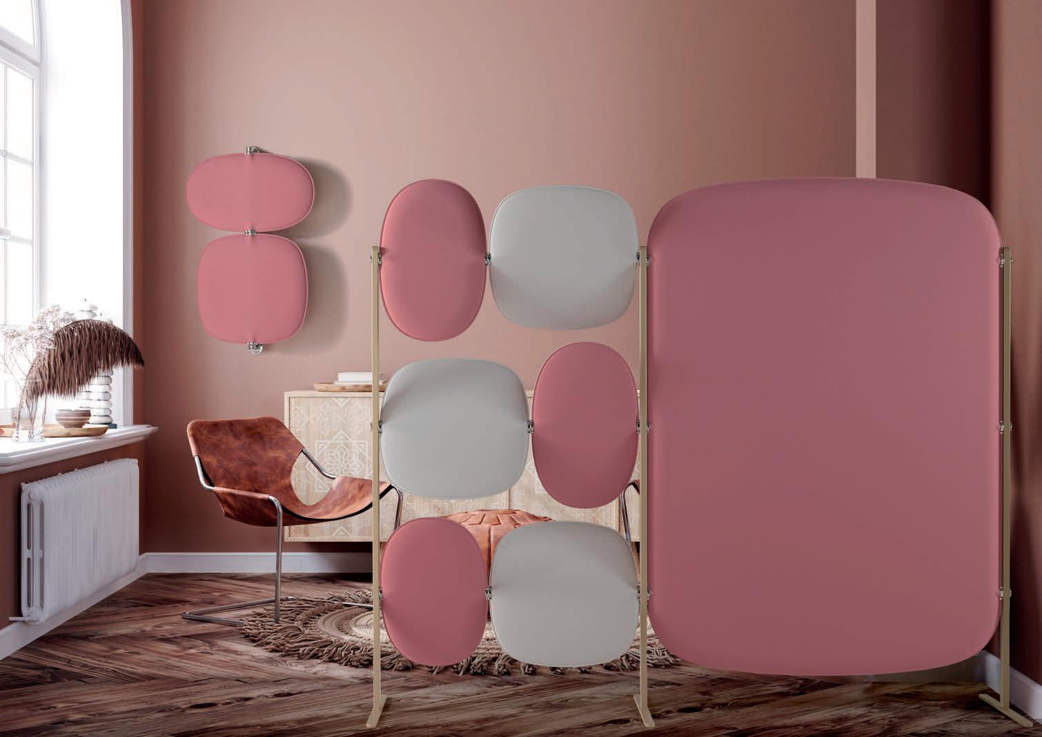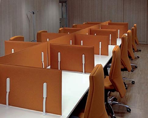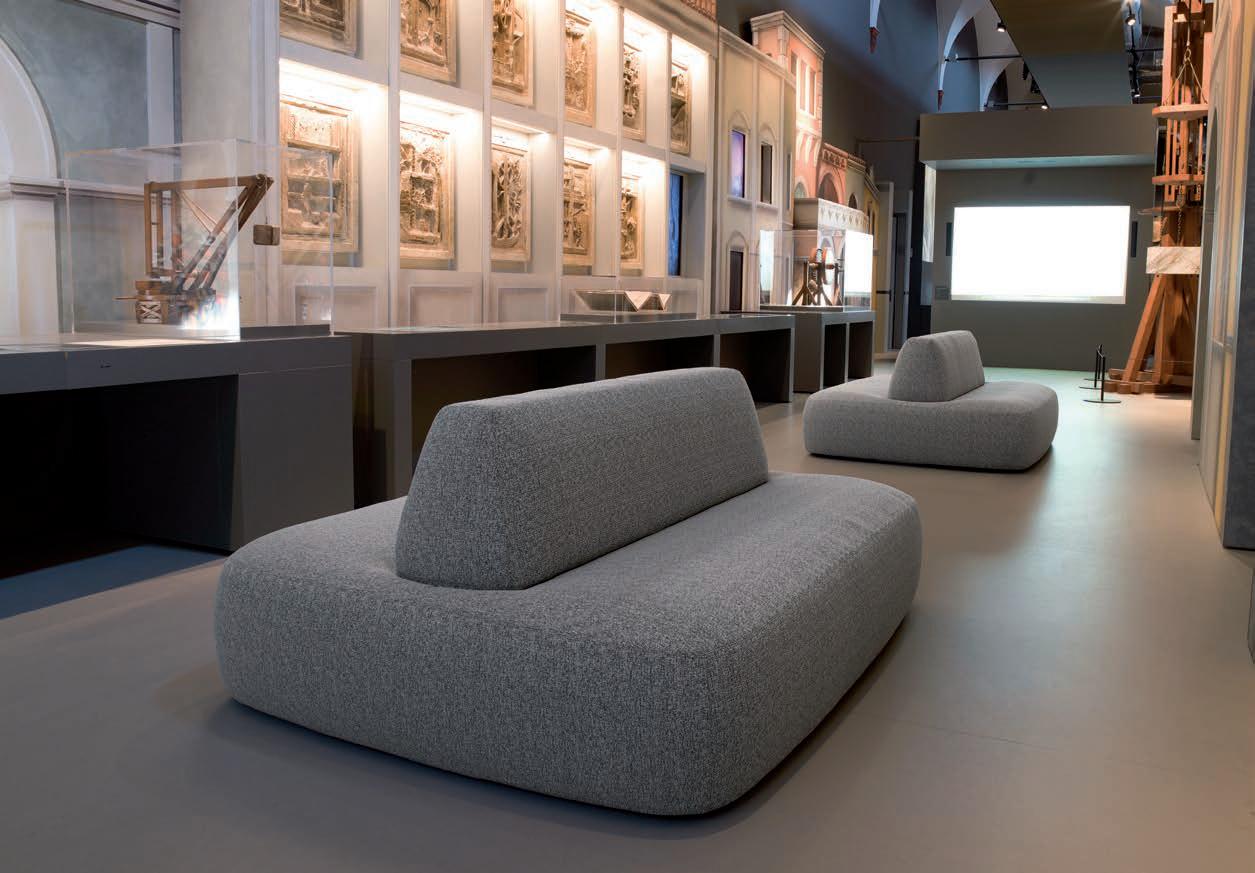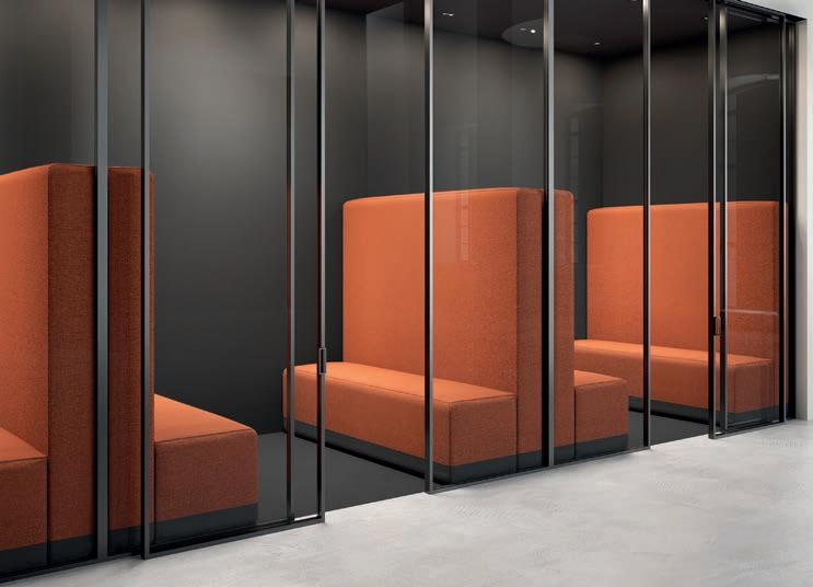 E Las superficies del panel están tapizadas en tejido de poliéster Trevira CS® firmemente aplicada al relleno interno con el cual forma un cuerpo único, sin solución de continuidad. Propiedad que permite obtener una superficie que, aún siendo visualmente muy soft, resulta ser resistente, difícil de arrancar y perforar.