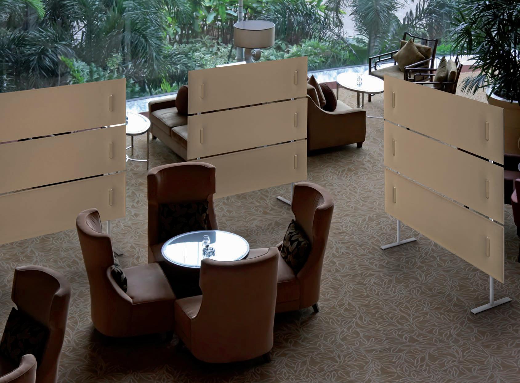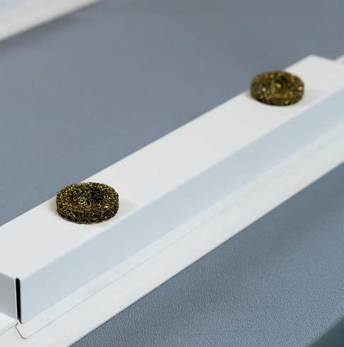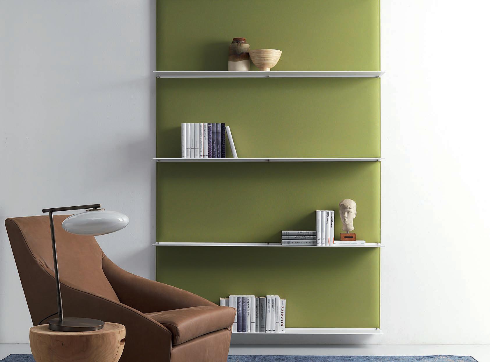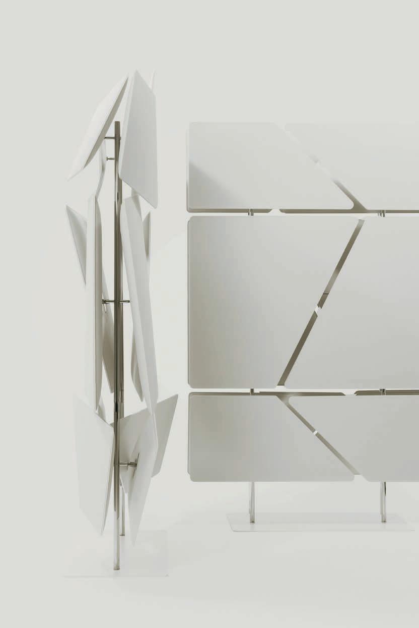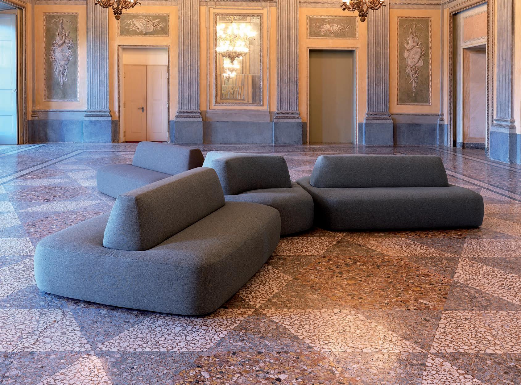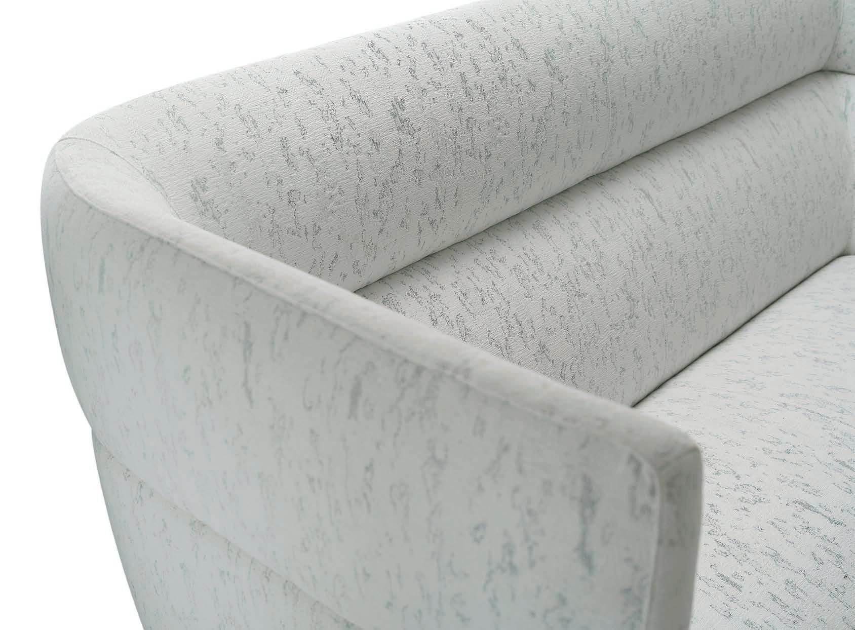 E Las superficies del panel están tapizadas en tejido de poliéster Trevira CS® firmemente aplicada al relleno interno con el cual forma un cuerpo único, sin solución de continuidad. Propiedad que permite obtener una superficie que, aún siendo visualmente muy soft, resulta ser resistente, difícil de arrancar y perforar.