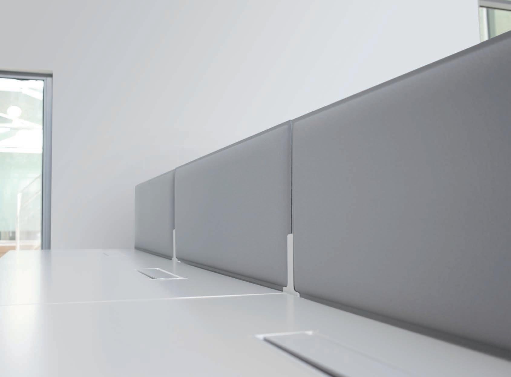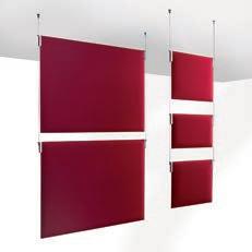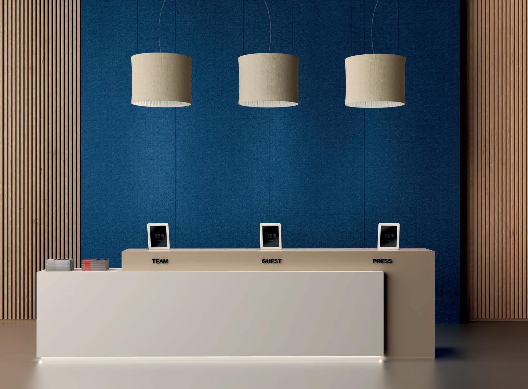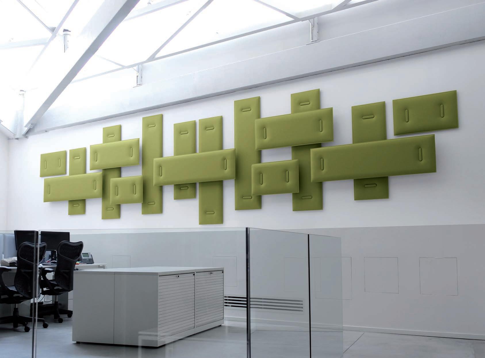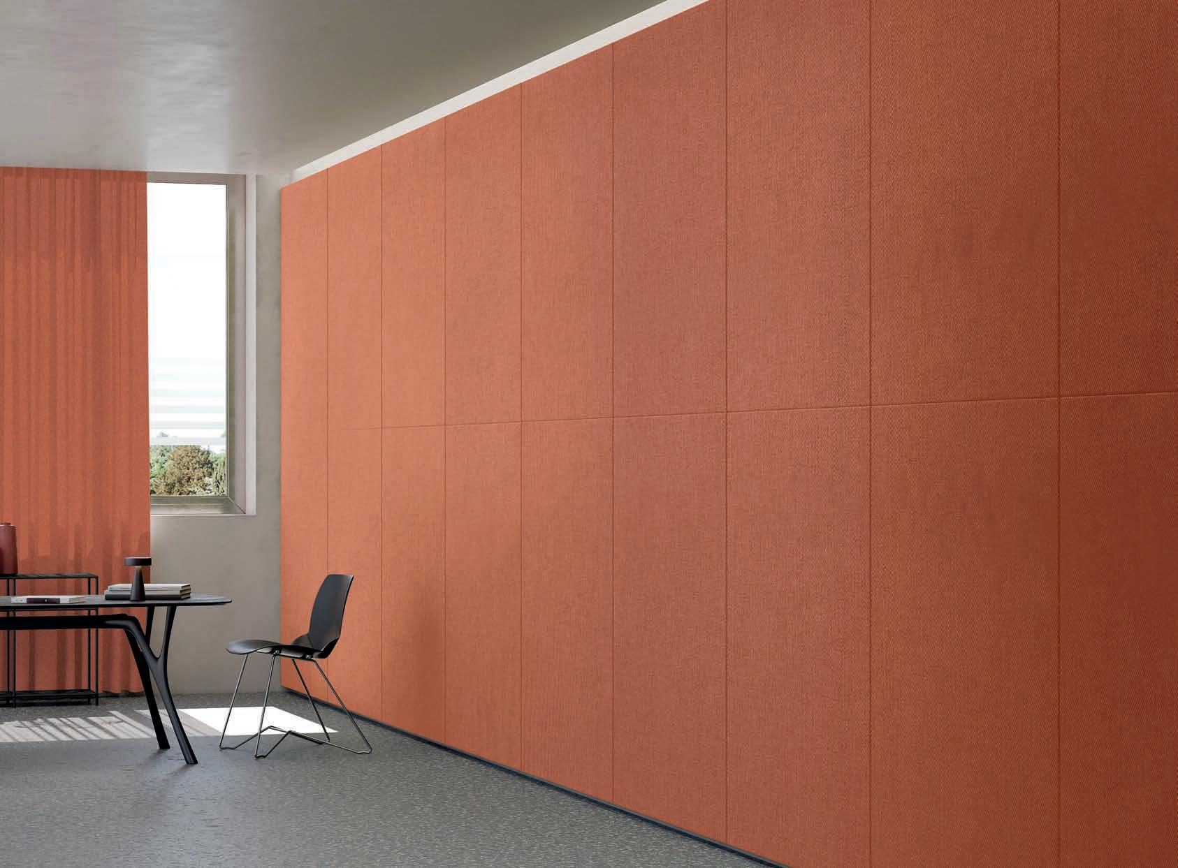 I Le superfici del pannello sono rivestite in tessuto di poliestere Trevira CS® solidamente applicato all’imbottitura interna con la quale forma un corpo unico senza soluzione di continuità. Proprietà che permette di ottenere una superficie che, pur essendo visivamente molto soft, risulta essere resistente, difficile da strappare e da perforare.