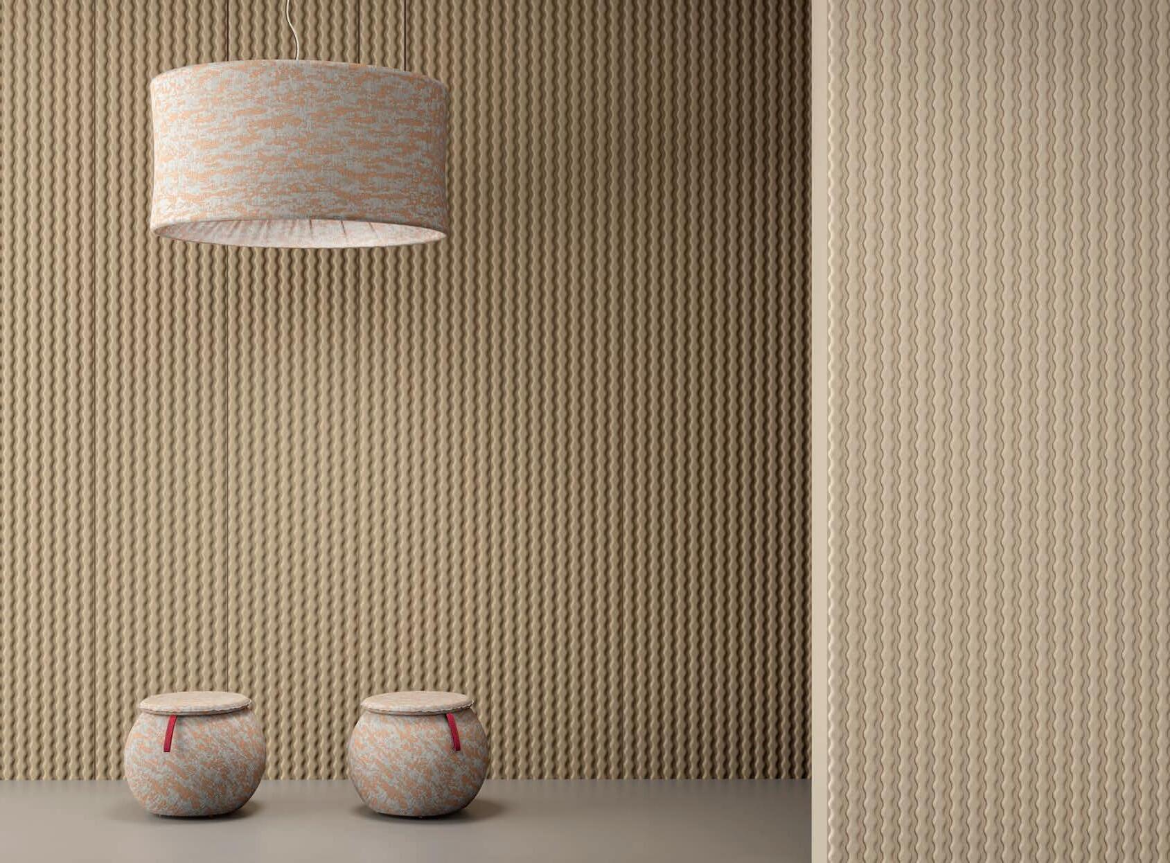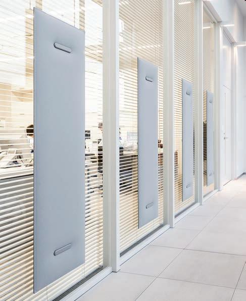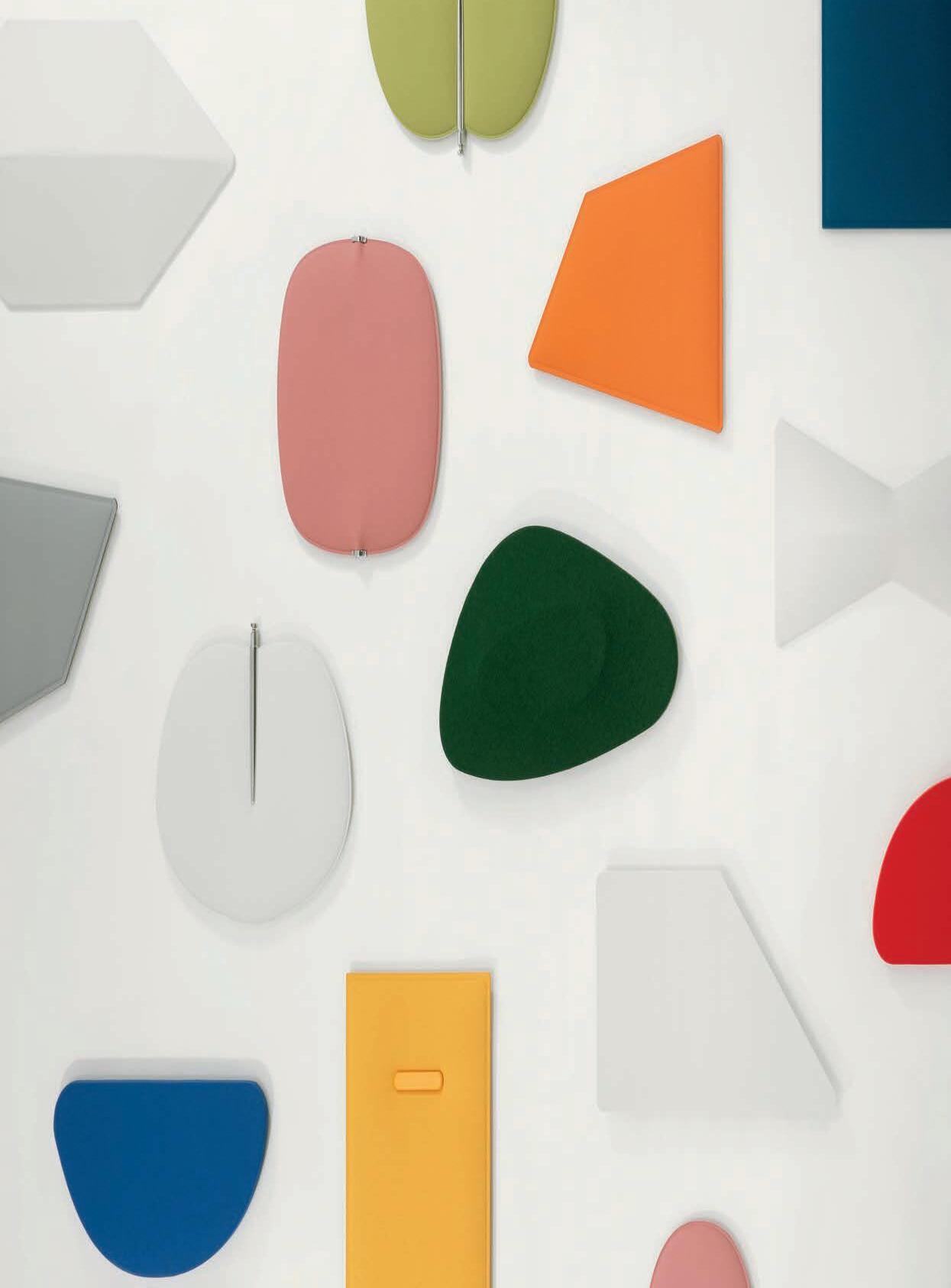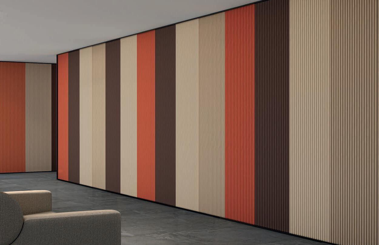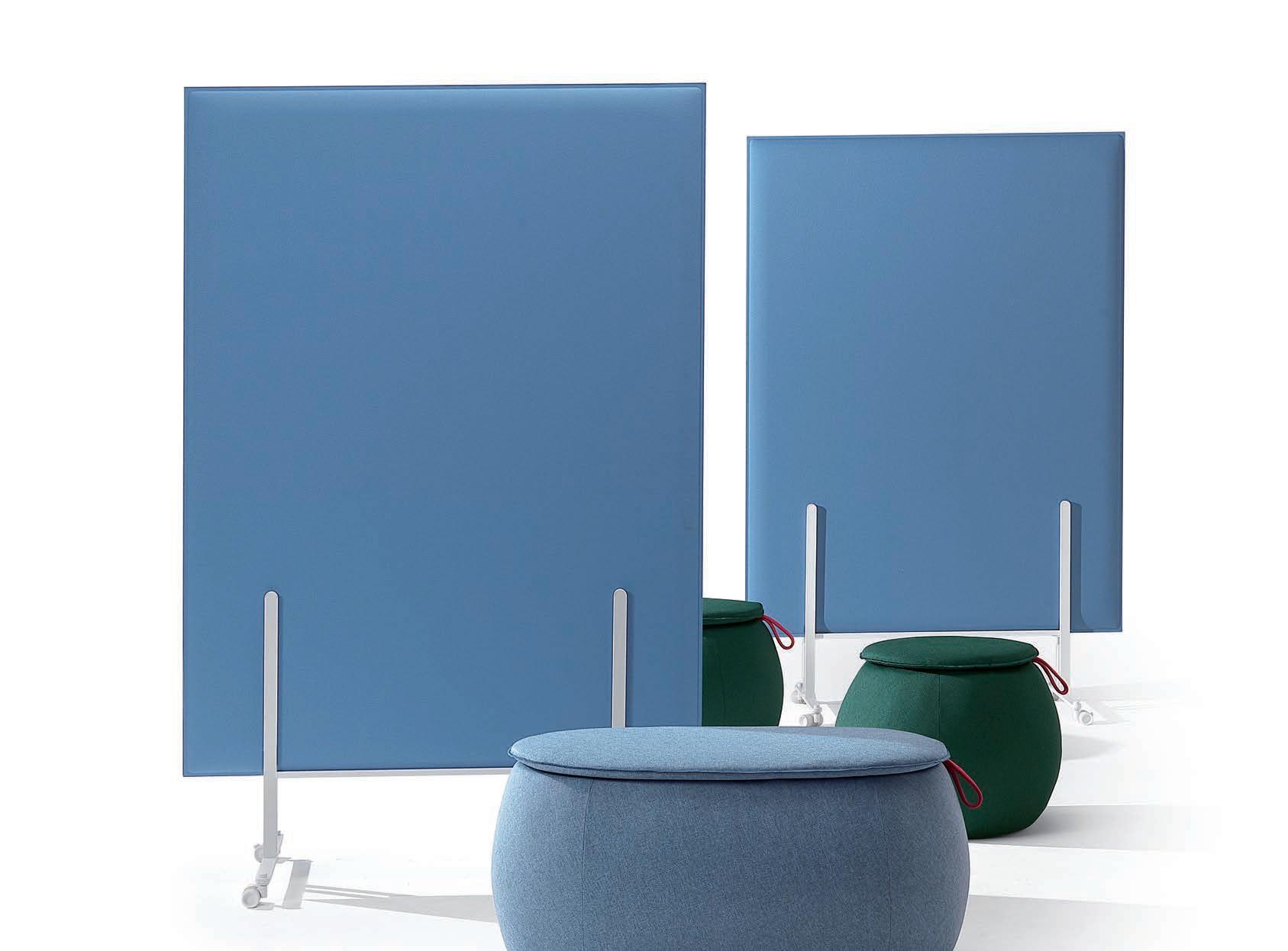 I Le superfici del pannello sono rivestite in tessuto di poliestere Trevira CS® solidamente applicato all’imbottitura interna con la quale forma un corpo unico senza soluzione di continuità. Proprietà che permette di ottenere una superficie che, pur essendo visivamente molto soft, risulta essere resistente, difficile da strappare e da perforare.