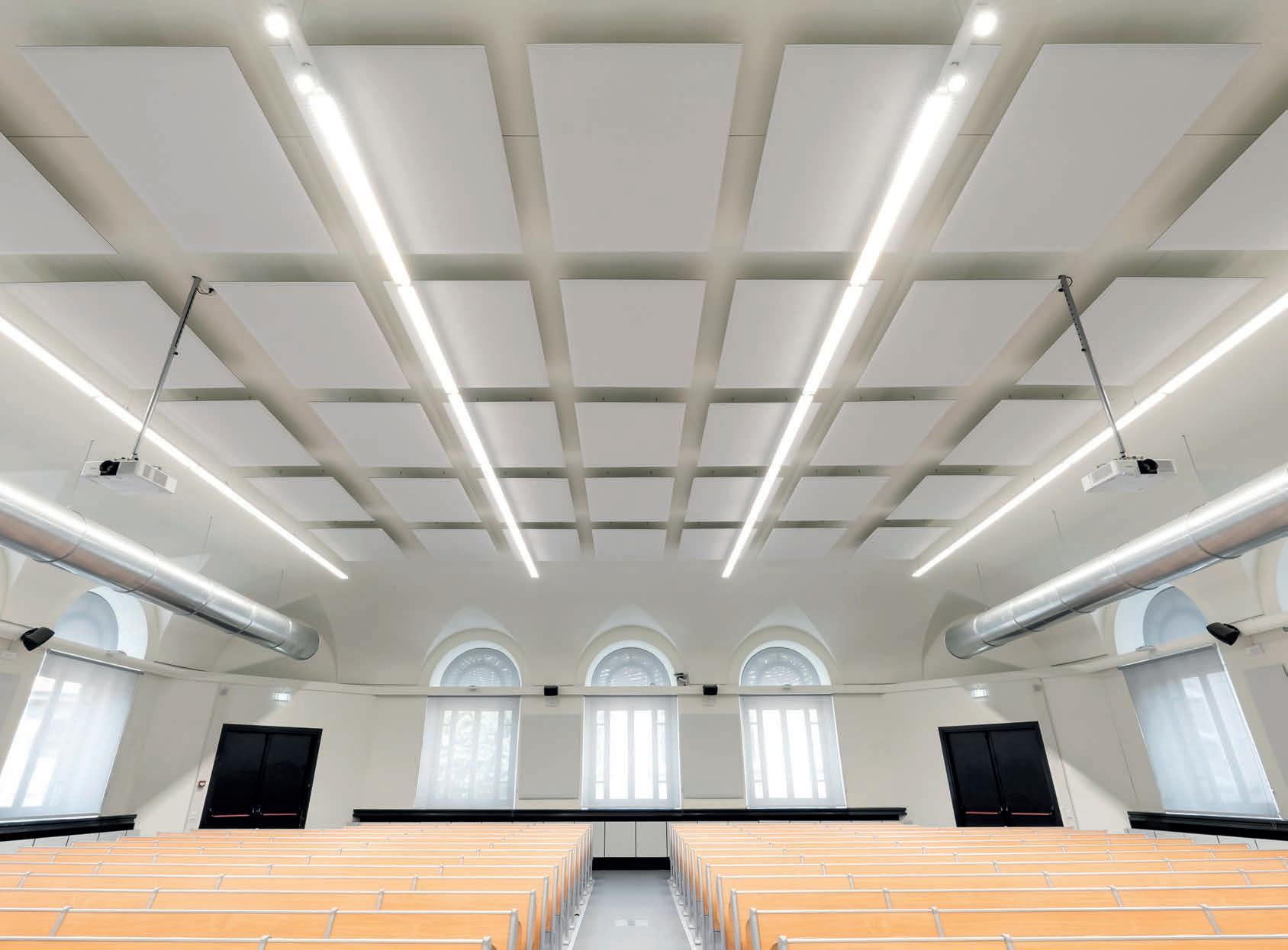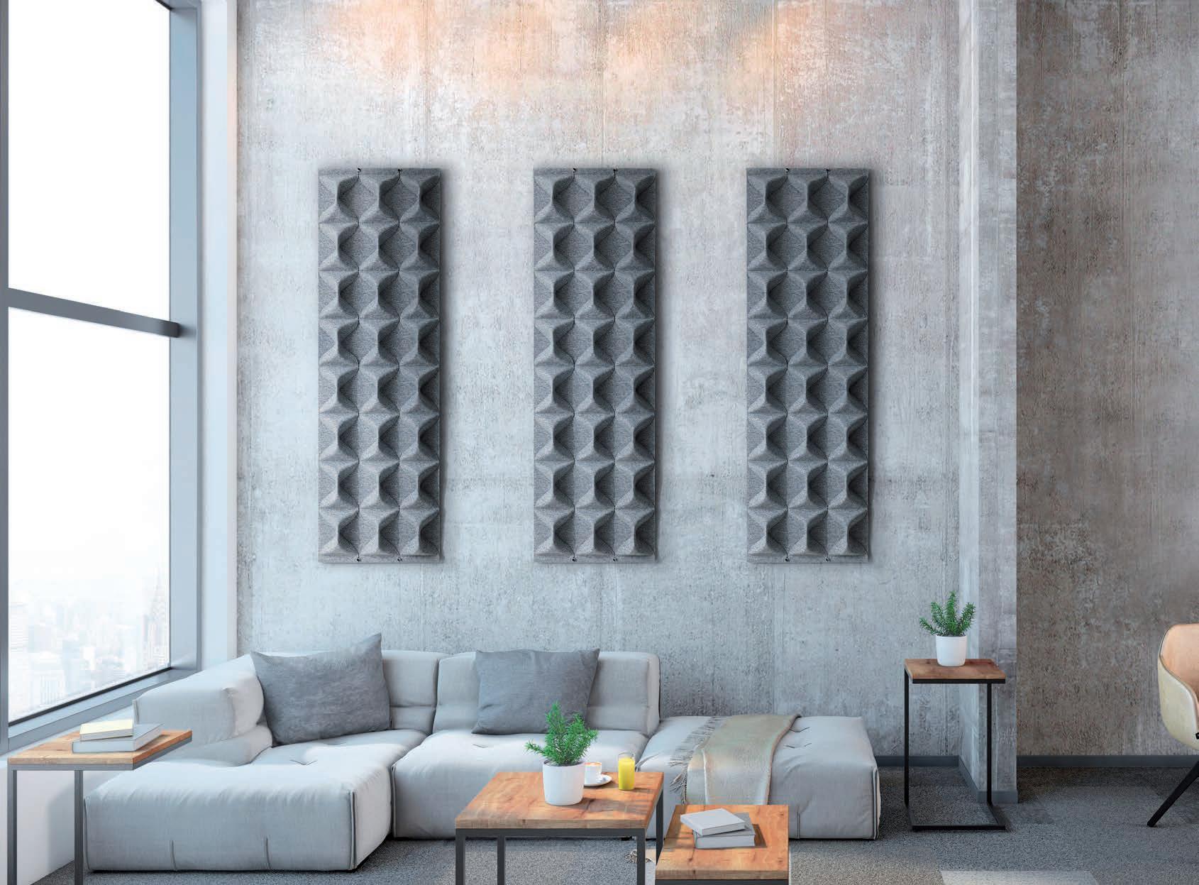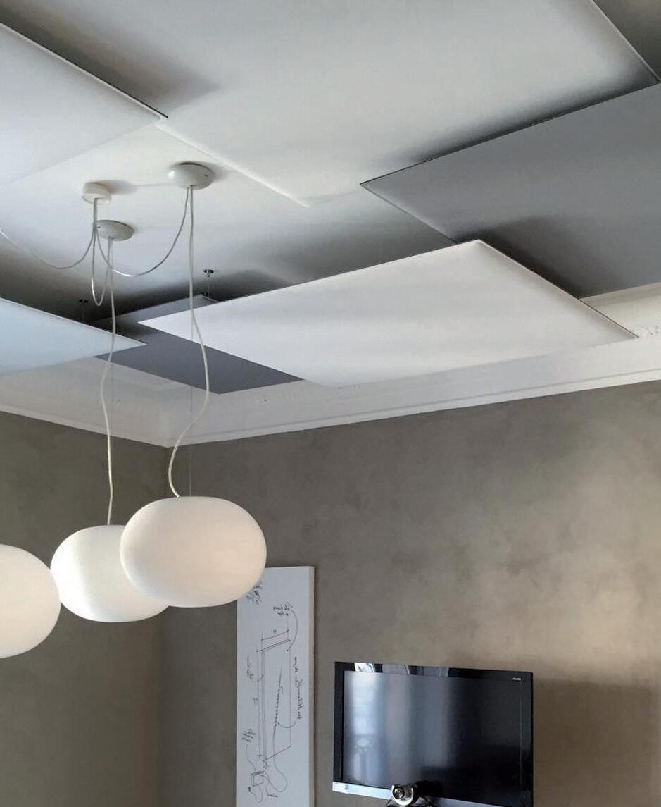 I_La brillante intuizione alla base della tecnologia brevettata Snowsound è l’utilizzo di pannelli composti da materiale a densità variabile, che permette di ottenere un assorbimento selettivo alle diverse frequenze e quindi di ottimizzare l’acustica dell’ambiente nonostante lo spessore molto contenuto dei pannelli. L’assenza di cornici e cuciture e la peculiarità del materiale con cui sono realizzati pannelli, li rendono estremamente leggeri, poco ingombranti e adattabili ad ogni ambiente.