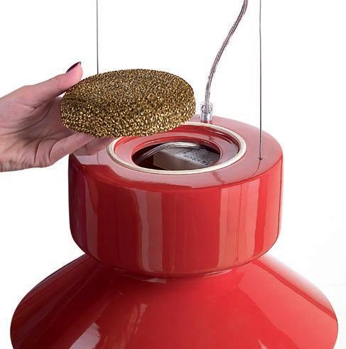 EN_The lamp heats the air in the upper part, generating a convective motion. The heated air passes through a filter made of galvanized aluminum mesh, treated with silver ions, purifying itself.