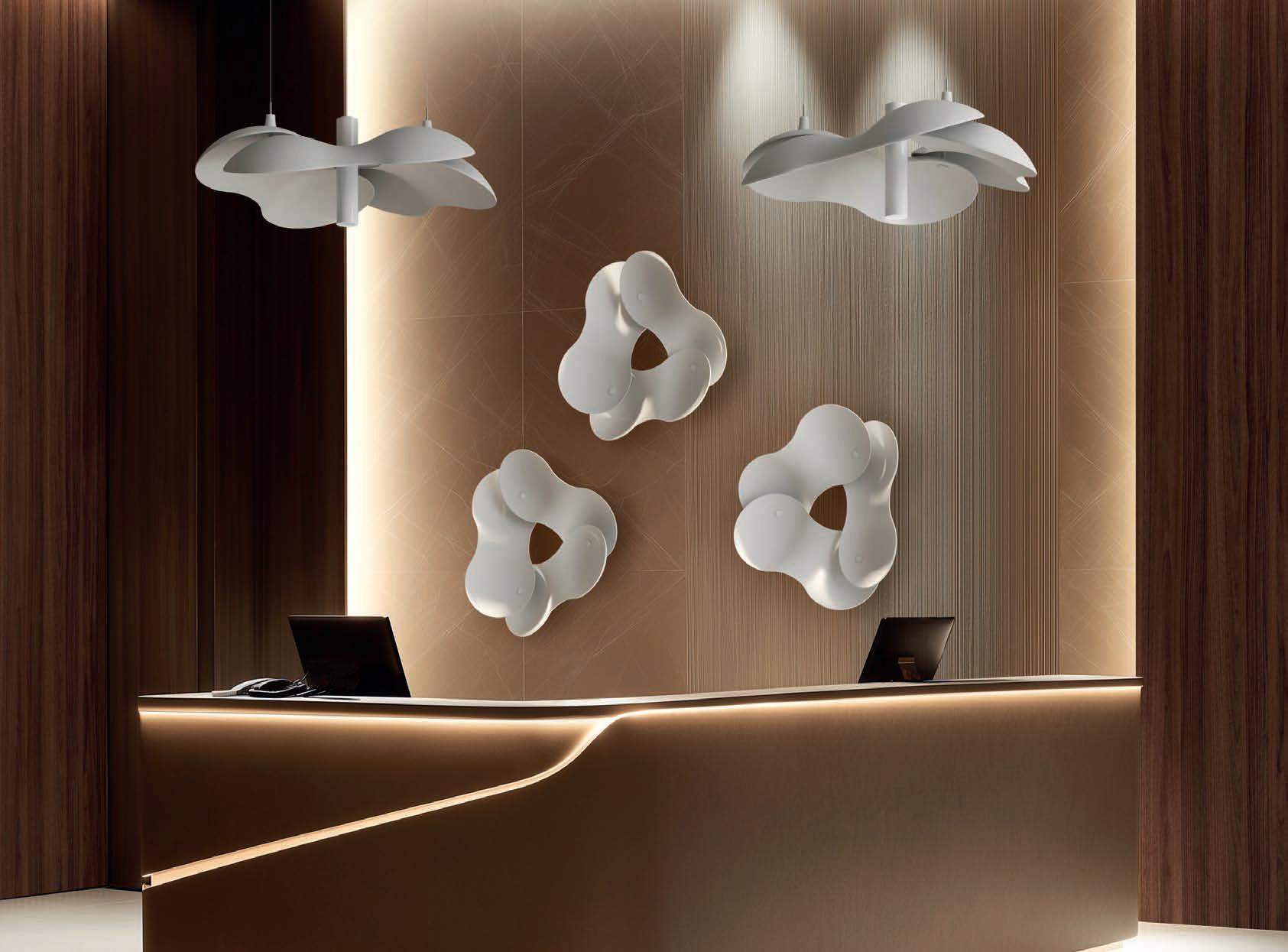 EN_Snowsound acoustic performance takes shape in projects thanks to great designers. Many shapes and colours are designed to be a visible and distinctive part of the project and to discreetly integrate into the spaces. Resolving acoustic problems, from the simplest to the most complex, with a complete range of products based on a totally innovative approach.
