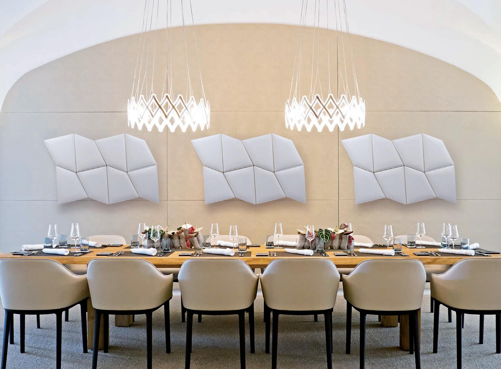 F_Les performances acoustiques de Snowsound prennent forme dans les projets des grands designers. Une multiplicité de formes et de coloris conçus aussi bien pour être la partie visible et distinctive du projet, que pour s’intégrer discrètement dans les différents espaces. Résoudre les problématiques d’acoustique, des plus simples aux plus complexes, avec une gamme intégrée de produits basés sur une approche tout à fait innovante.