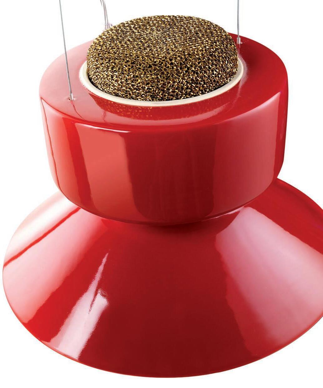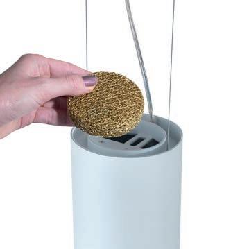 I_Il calore della lampada riscalda l’aria nella parte superiore generando un moto convettivo. L’aria così riscaldata passa attraverso un filtro realizzato in maglia di alluminio, galvanizzato e trattato con ioni d’argento, purificandosi.