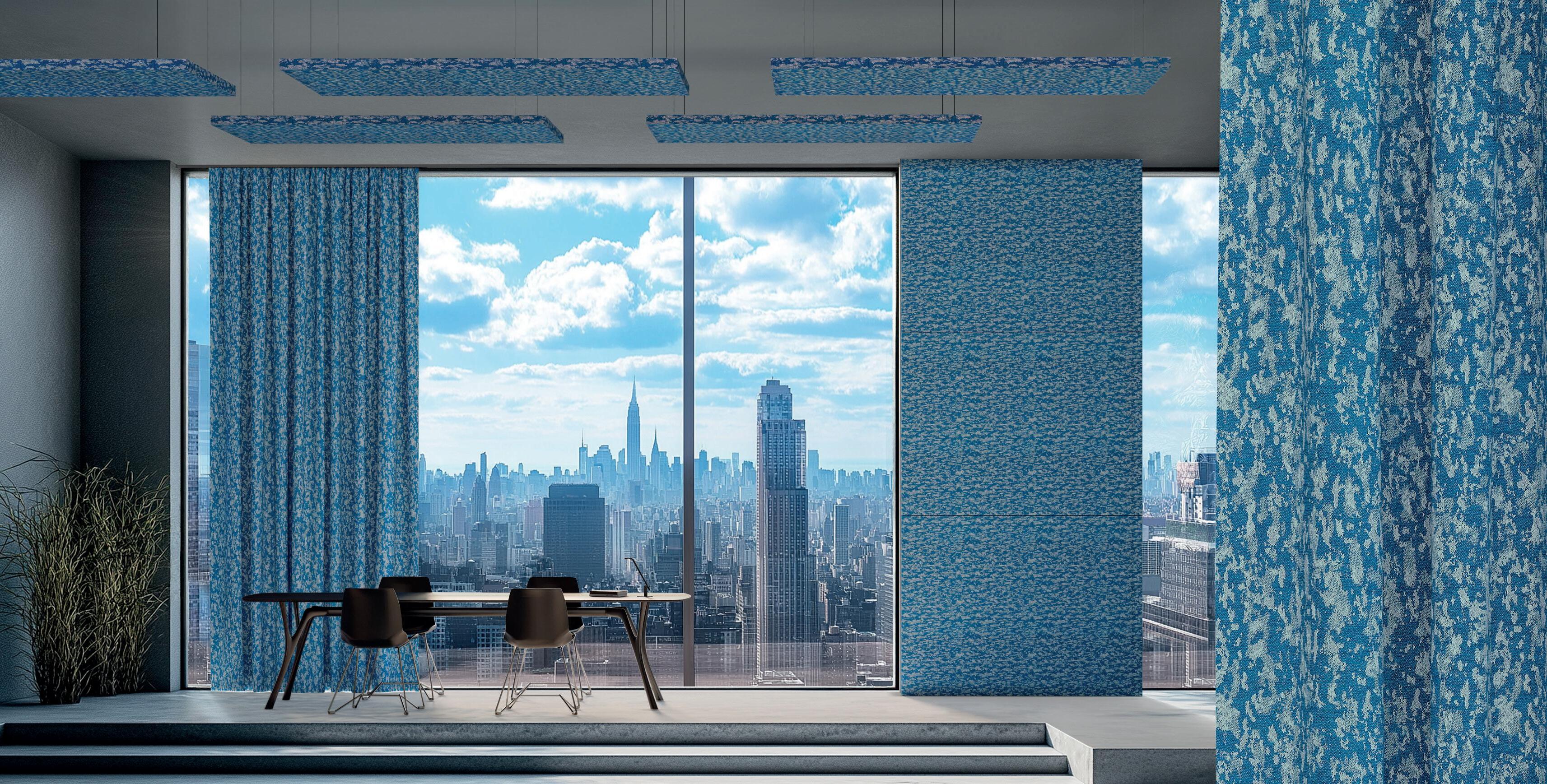 I_Snowcustom combina al meglio la tecnologia Snowsound Fiber Textiles dei tessuti fonoassorbenti abbinata alla densità differenziata del materiale fonoassorbente sottostante.