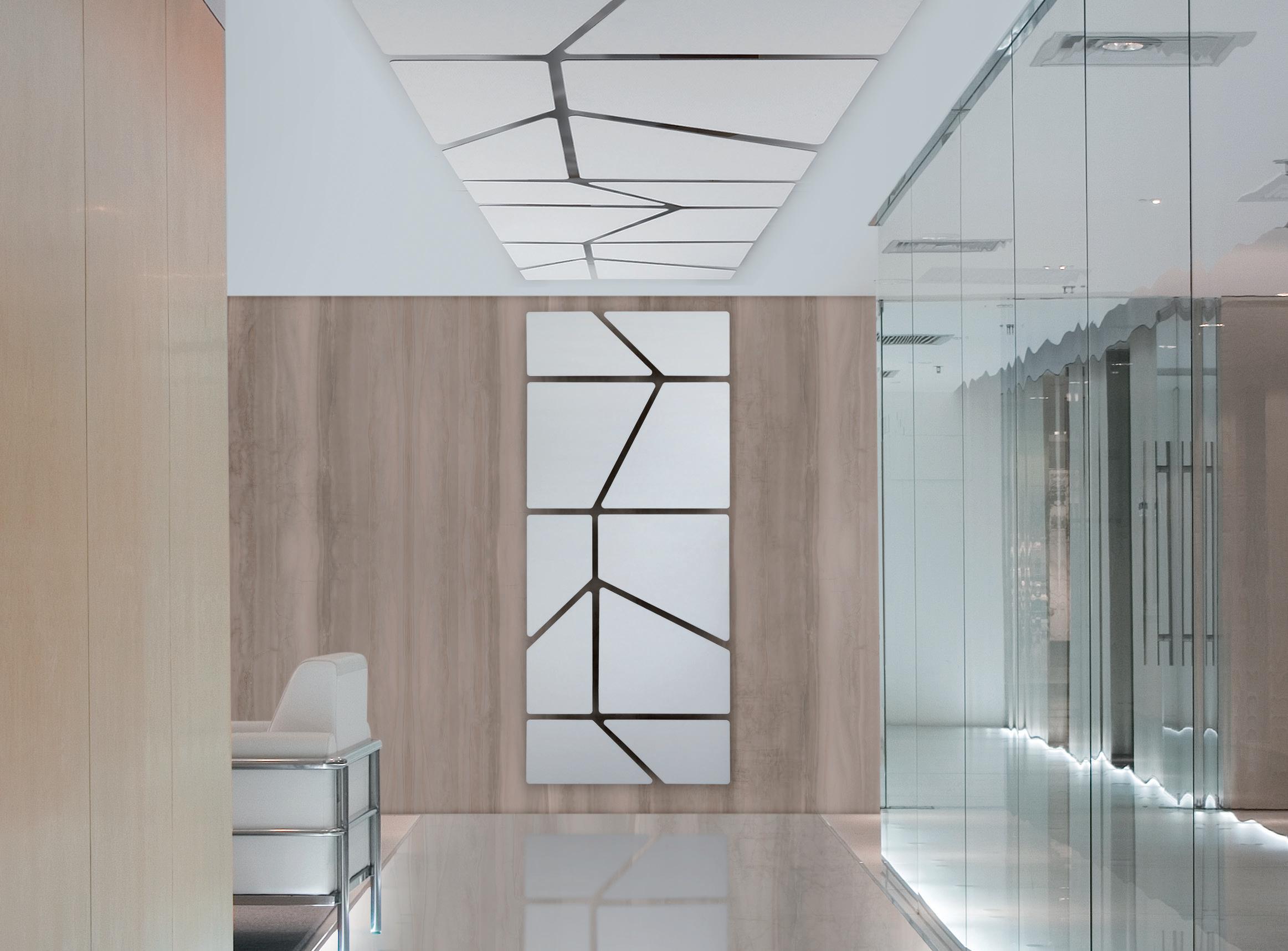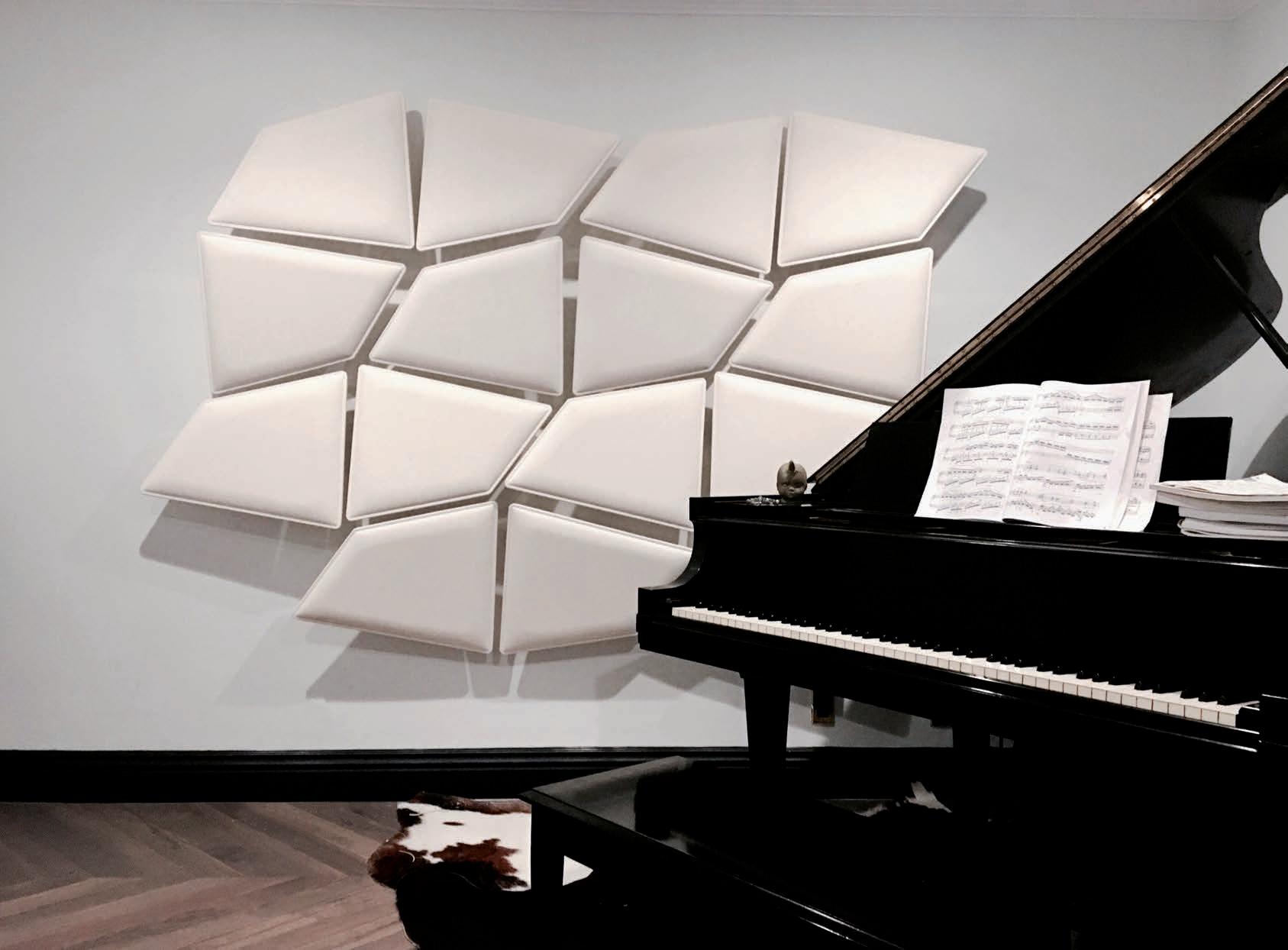 EN_The brilliant intuition at the heart of Snowsound patented technology is based on the use of panels composed of material with variable density, which achieve selective absorption at different frequencies and thus optimise the acoustical environment notwithstanding the thinness of the panels. The absence of frames and seams and the unusual characteristics of the material used in the fabrication of the panels, render them extremely light, unobtrusive and adaptable to any environment.