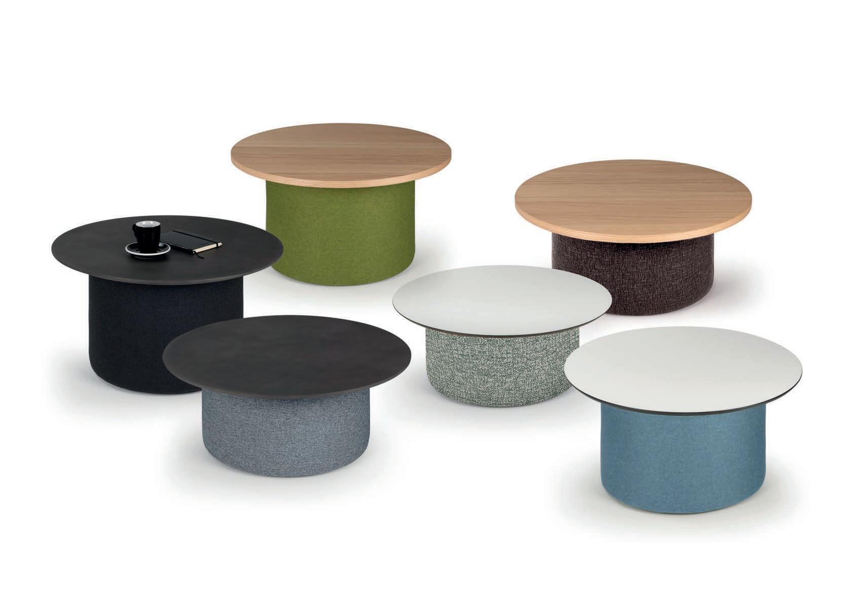 I Tavolini disponibili in varie dimensioni e finiture. Il fusto portante è realizzato con le tecnologie fonoassorbenti Snowsound.