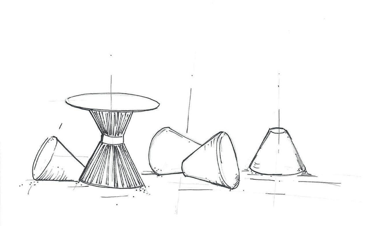 EN_An innovative system of sound-absorbing tables, available in round and oval versions with tops of many sizes, meant to satisfy different aesthetic and functional needs. The structure, entirely in epoxy powder-coated steel has an original hourglass shape made of narrow rods, which creates two conical figures (upper and lower). Both are filled with sound-absorbing elements, covered with Snowsound acoustic fabric Fiber 3 Melange, available in a wide range of colours.