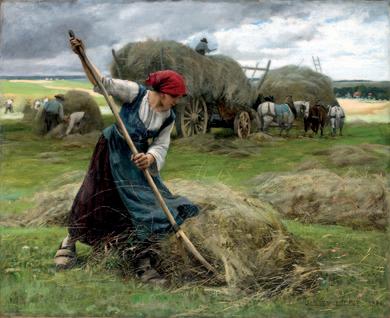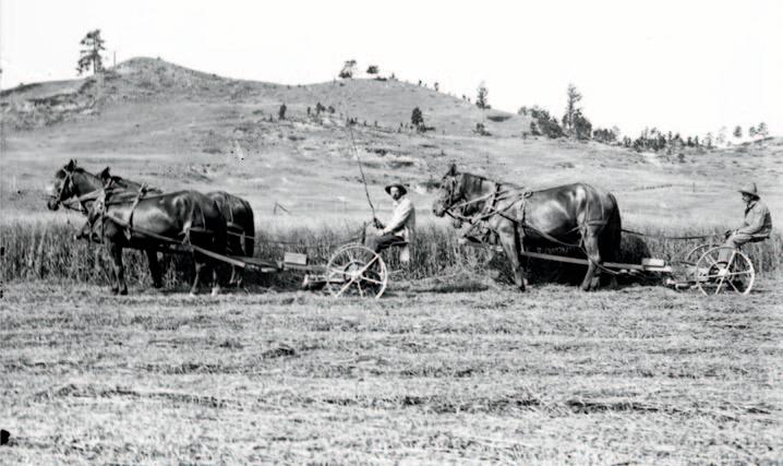 Evelyn Cameron photograph of mowing hay at Fiddleback Ranch near Knowlton, 1909. During the 1910s, rain fell abundantly across Montana, creating a false impression of the state’s agricultural potential.