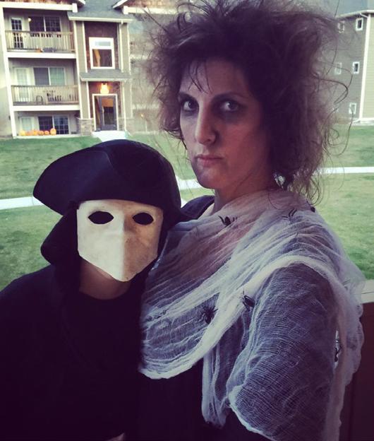My fervor didn’t fade in adulthood. I convinced my ex-husband to dress up as a lion so I could be his corseted tamer. Over the years, I’ve shown up to various workplaces as a Zombie (eliciting worried side-eye from weirded-out coworkers), Medusa (I mean who doesn’t own a skullcap festooned with green satin snakes?) and resplendent in Day of the Dead regalia with full face makeup.
