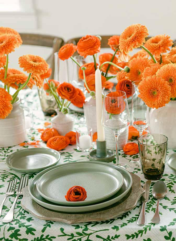 A textured linen paired with natural elements. The result? A table that mimics our favorite flower garden.