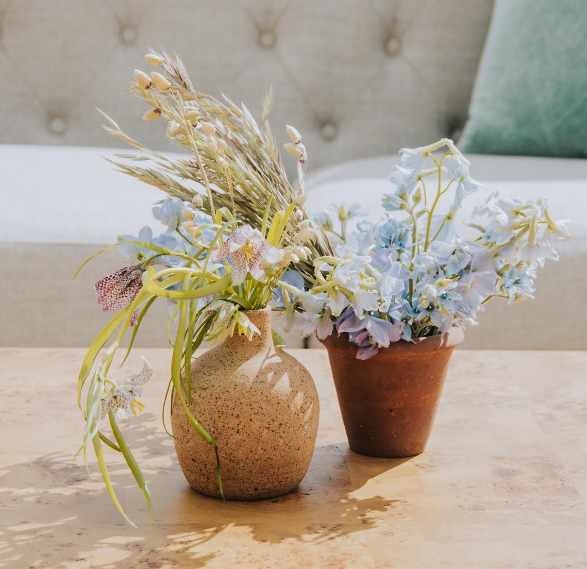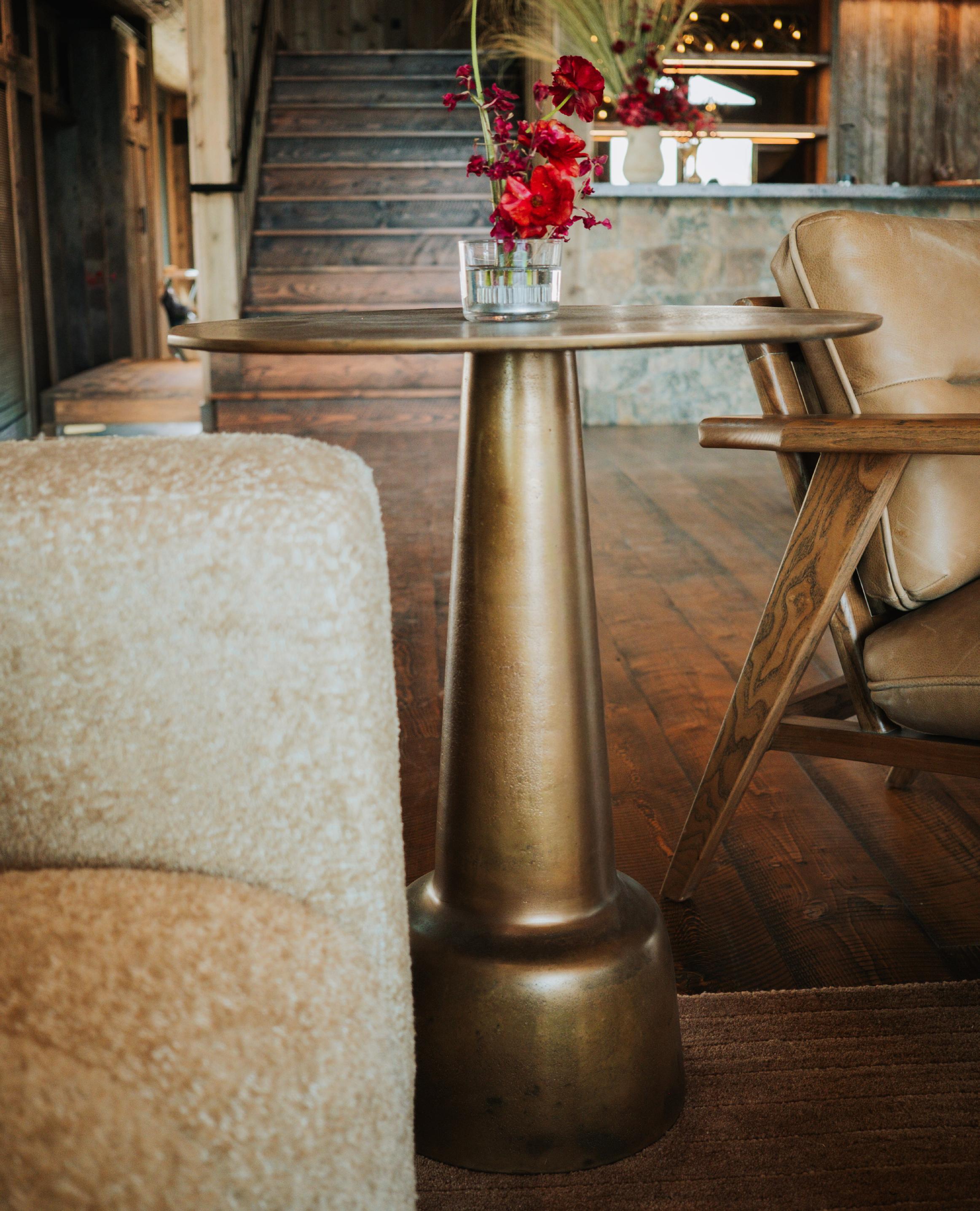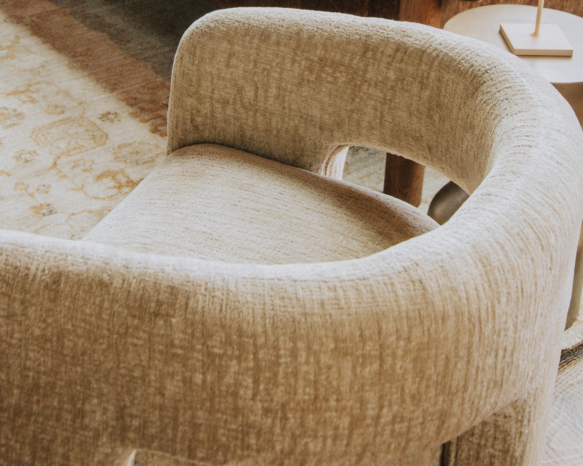 Bathed in soft natural light, this lounge strikes a perfect balance between warmth and comfort. The sculptural elements of the Lloyd Coffee Table anchors the space, surrounded by plush, curved seating in earthy and inviting tones. The new Arlo Sofa and Monet Chair pair together with layered textures of velvet and linen. Thoughtfully placed neutral toned florals echo the natural landscape just beyond the windows. The Poldina Lamp in sand creates a soft glow that welcomes you to the space, seated on our new Miguel Side Table. The result is an intimate, design-forward lounge that feels both elevated and effortlessly livable. Perfect for downtime at a corporate retreat or private event.