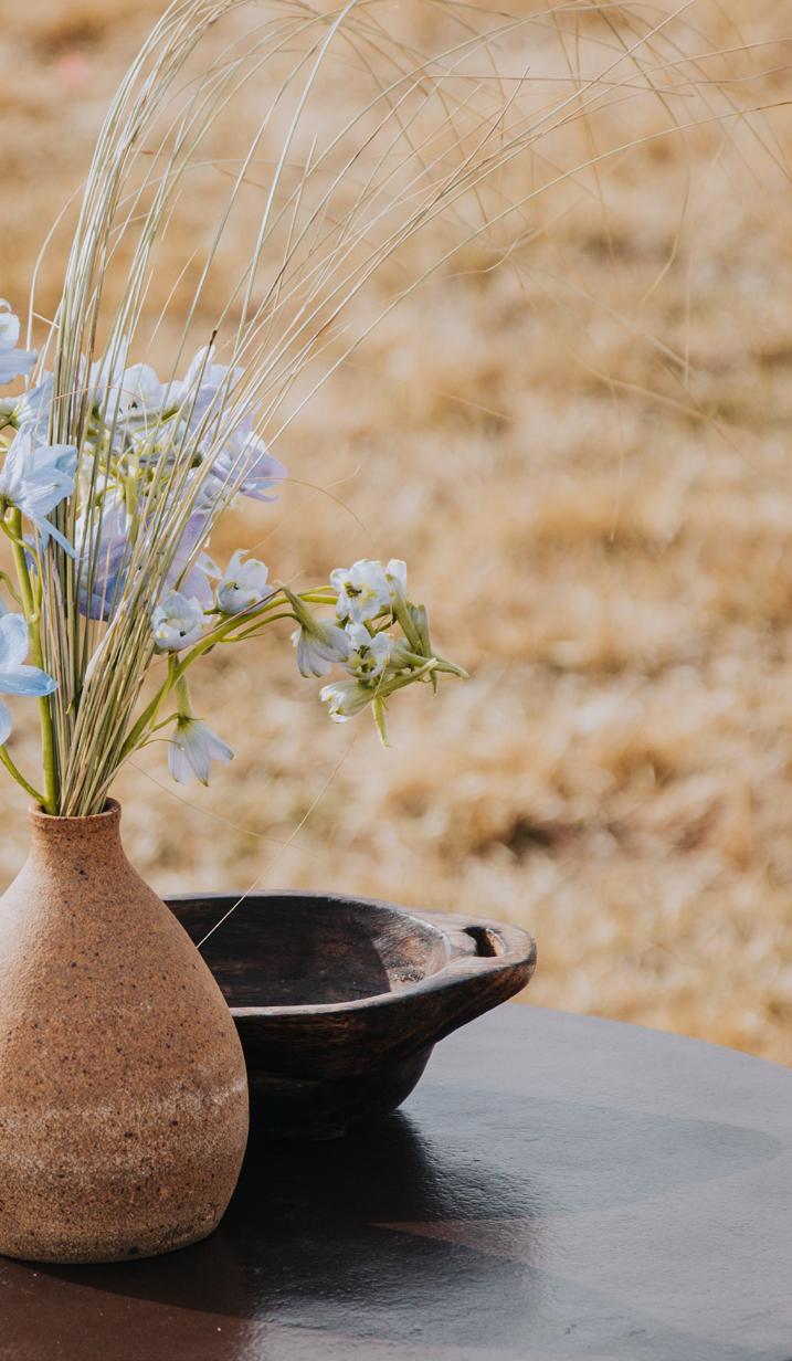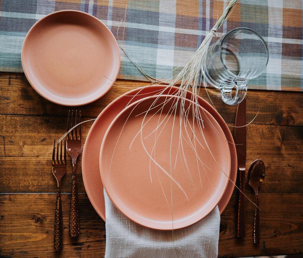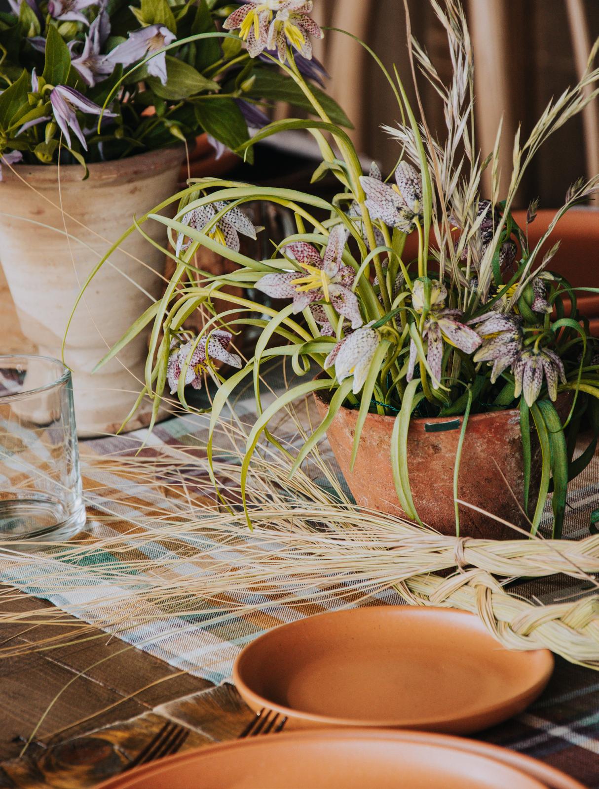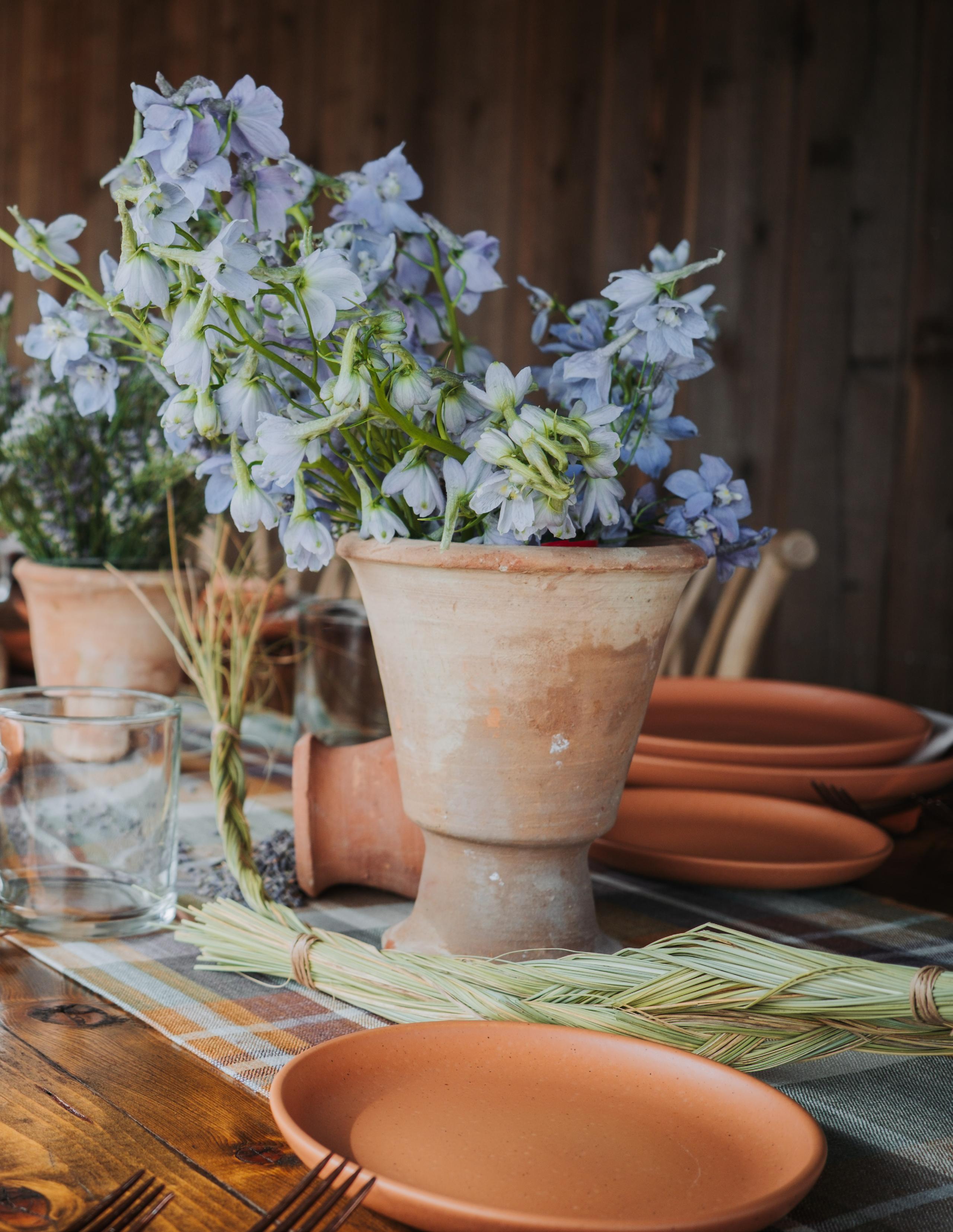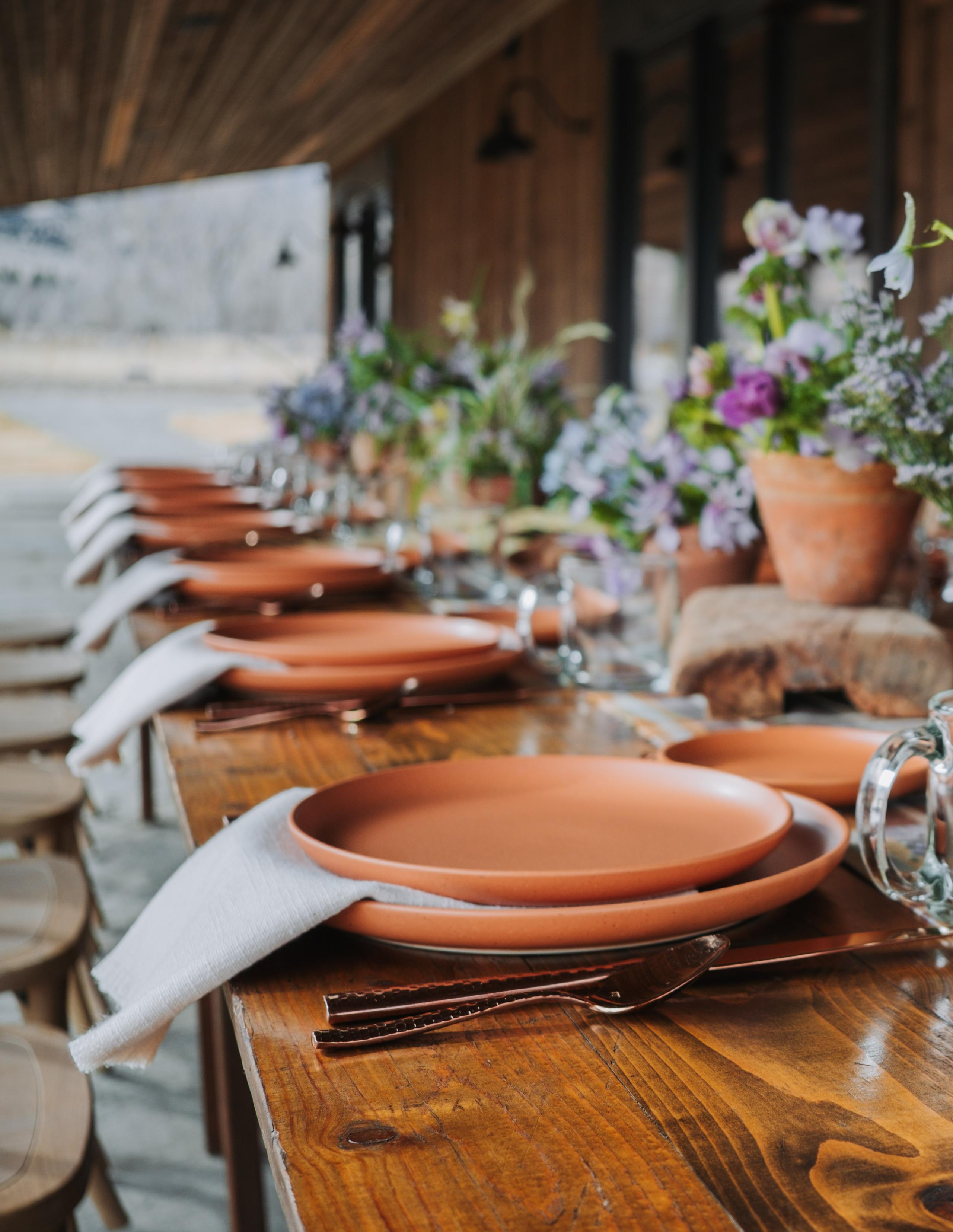 WILLA TERRA COTTA PLATES ADD THE PERFECT POP OF COLOR IN THE MOUNTAIN LANDSCAPE.