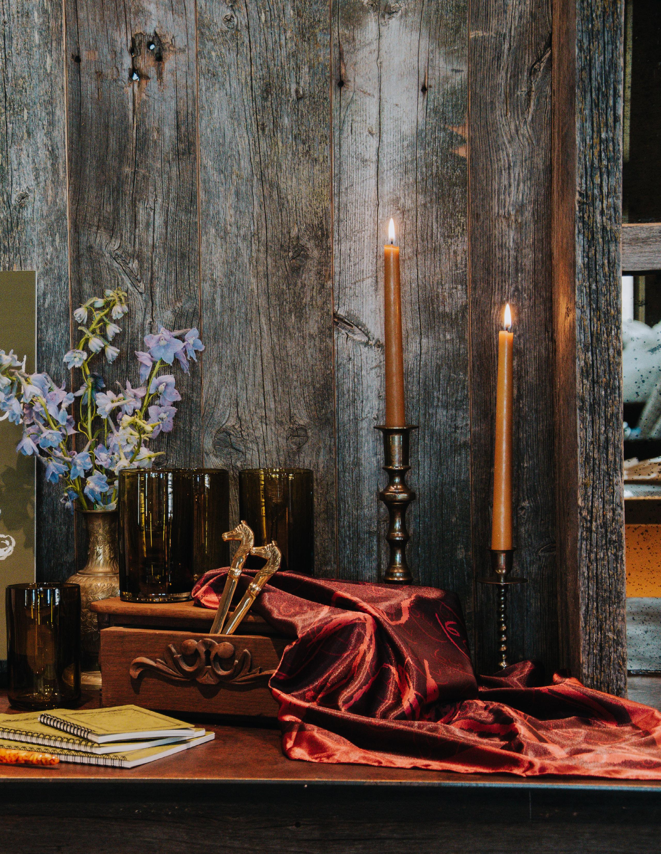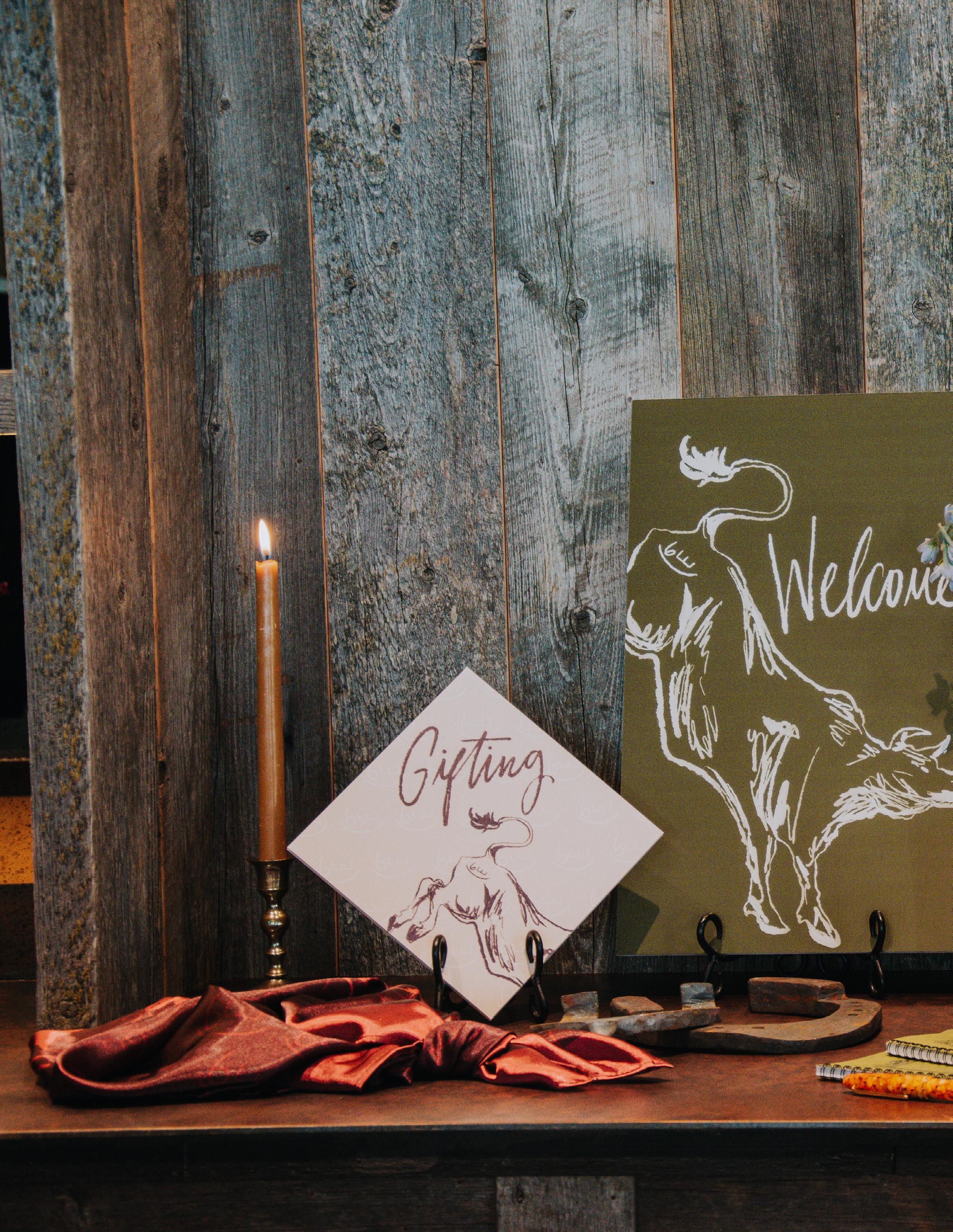 FEATURING CUSTOM WILD RAGS, GLASSWARE FROM GLASSYBABY, AND STATIONERY GOODS FROM PAPER AND GRACE. STYLED WITH CUSTOM SIGNAGE AND BRASS CANDLESTICKS.