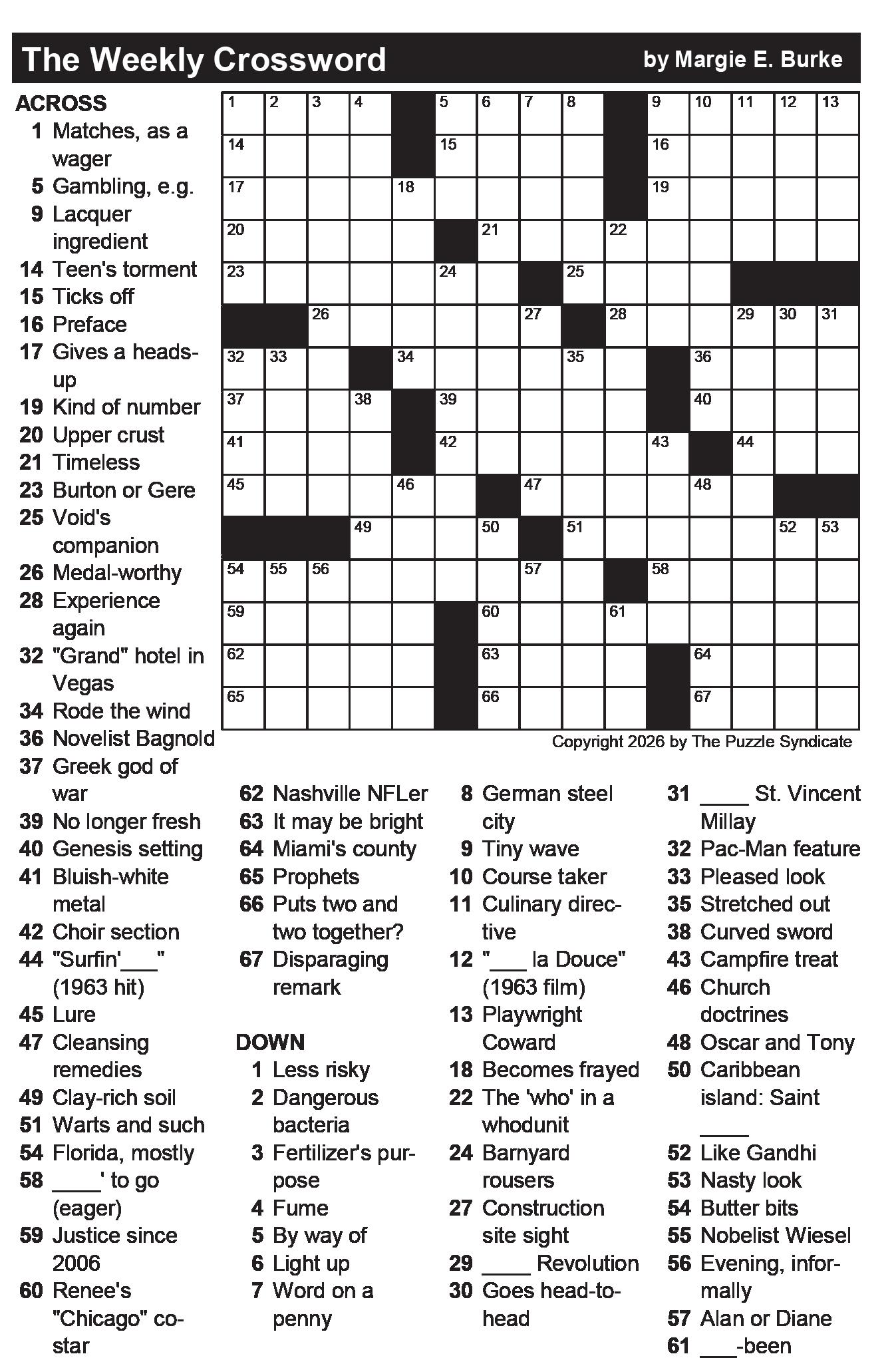 Deadline for display advertising is 2 p.m. Thursday. Deadline for news submissions, calendar items, classifieds and legal advertising is noon Friday, for the following week’s newspaper.