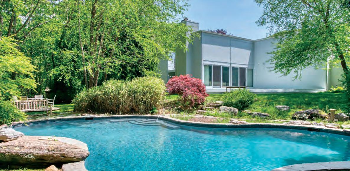 from the picturesque backdrop of the property and lake. On this main level, two welcoming guest bedrooms and a full bathroom are found. Ascend to the upper level to discover the primary bedroom, featuring a spacious closet, a private waterside balcony, and an oversized ensuite bathroom. An additional bedroom, ideal for an office, completes this floor. A separate suite, complete with its own bathroom and pool access, adds to the home's allure. The lower level is meticulously finished, hosting a substantial recreational room and a laundry facility. Outside, the property delights with a heated free-form pool, extensive decking, and a gently sloping lawn that meets the water's edge, crafting the perfect lakeside sanctuary. and outdoor shower. Contact: Helen Stubbmann & Jason B. Schommer. Phone: 631-375-3778 | 917-553-7383 Price: $4,995,000 Web ID# 908160