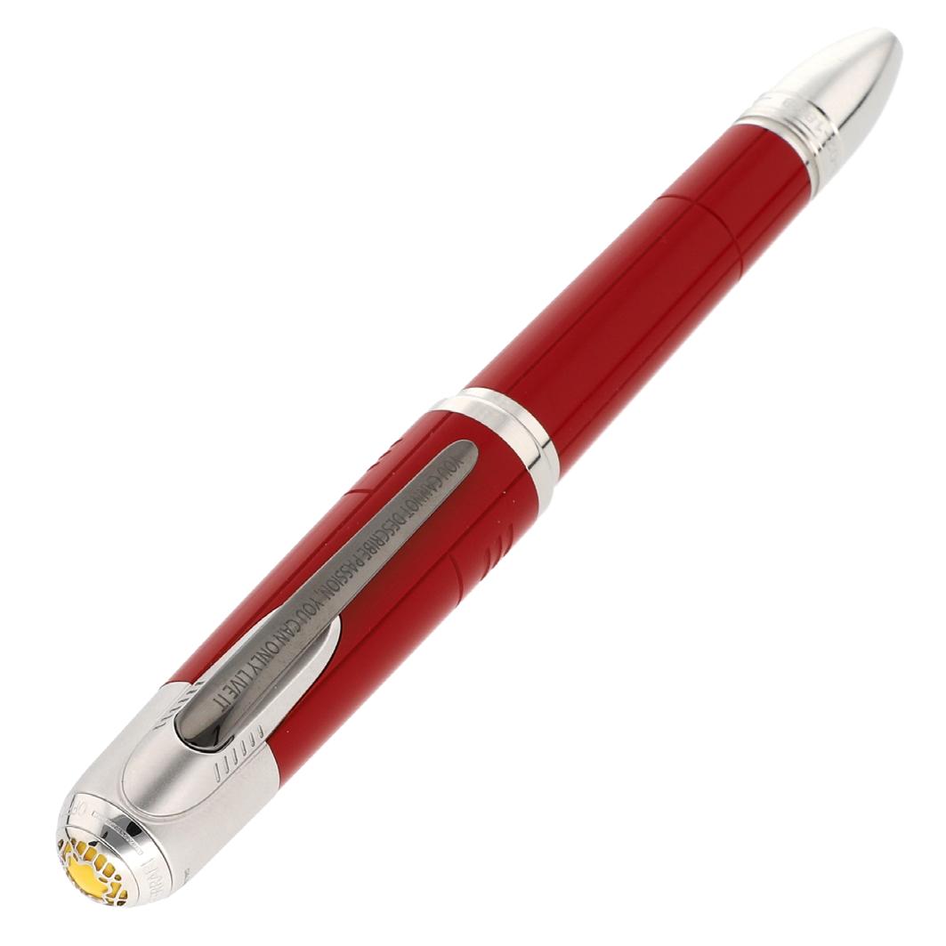 BOLÍGRAFO “MONTBLANC” *PRINCESSE GRACE DE MONACO GRACE KELLY* EDICIÓN LIMITADA SERIADA EN RESINA PÚRPURA, HERRAJES DORADOS, EMBLEMA EN CAPUCHÓN, TOPACIO ROSA EN CLIP, ESTUCHE Y DOCUMENTOS.