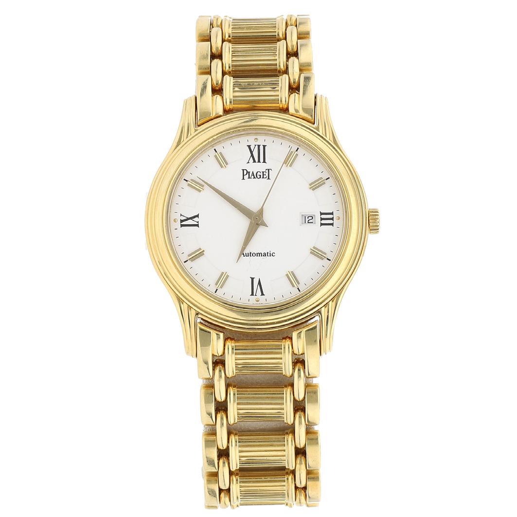 CAJA 42 MM EN ORO ROSA, BRAZALETE PIEL DE COCODRILO, CARÁTULA BLANCA, INDICADORES NÚMEROS ROMANOS, MOV. AUTOMÁTICO N° 1026079, COMPLICACIONES: FECHADOR, INDICADOR DE RESERVA DE MARCHA 60 HORAS, SERIE: 196, CAL: UN118, JOYAS: 50, GRS. 106.4, EDO. DE CONSERVACIÓN: SATISFACTORIO