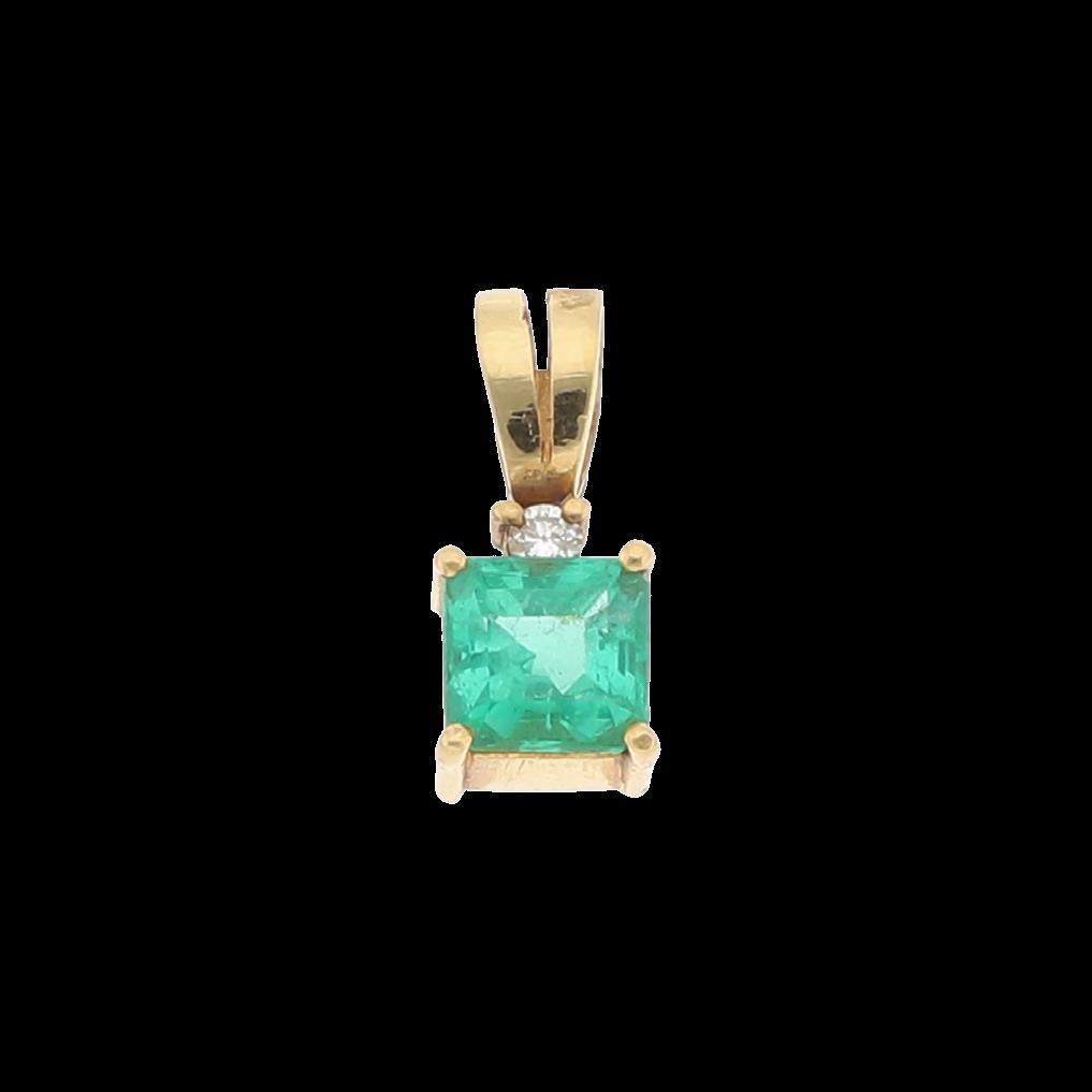 CONFECCIONADO EN ORO AMARILLO 18K CON ESMERALDA TALLA ESMERALDA 1.17 CTS, BRILLANTE 0.05 CTS. I, I-K, GRAMOS 1.8, CALIDAD Y PESOS APROXIMADOS