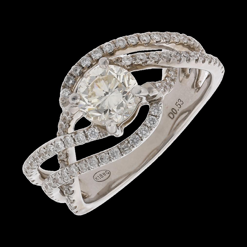 CONFECCIONADO EN ORO BLANCO 18K CON BRILLANTE CENTRAL 0.93 CTS. SI, J-K, BRILLANTES MELEE 0.53 CTW, MED. 6, GRAMOS 5.2, CALIDAD Y PESOS APROXIMADOS