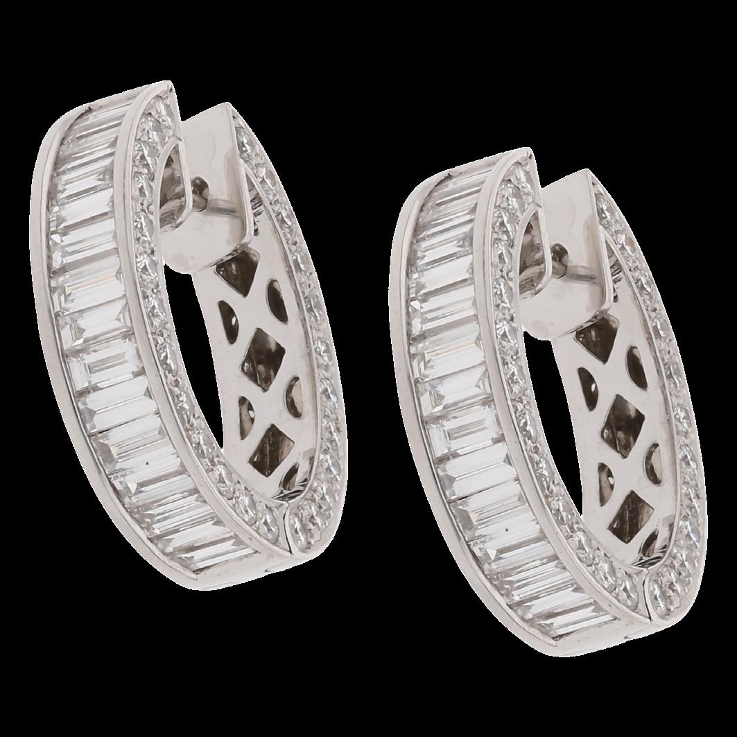 CONFECCIONADOS EN ORO BLANCO 18K, CON BRILLANTES CENTRALES 0.30 CTW (2X0.15) SI/I Y BRILLANTES MELEE 8.52 CTW, GRAMOS 26.6, CALIDAD Y PESOS APROXIMADOS