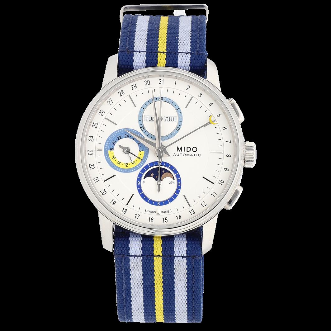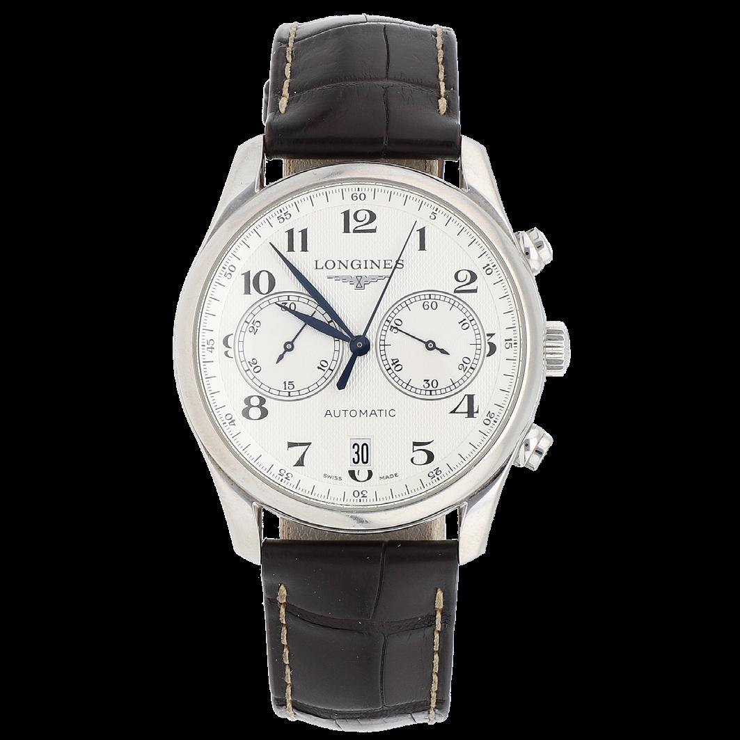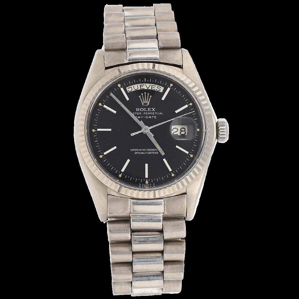 CAJA 42.3 MM EN ORO BLANCO, PULSO PIEL, BROCHE DESPLEGABLE ORO BLANCO, CARÁTULA AZUL, NÚMEROS ROMANOS, MOVIMIENTO AUTOMÁTICO, FUNCIONES: CRONÓGRAFO, FECHADOR, SERIE 109X XX, CALIBRE 582 QA, NO. DE MAQUINARIA 0207230, JOYAS 28, GRAMOS 173.6, ESTADO DE CONSERVACIÓN SATISFACTORIO