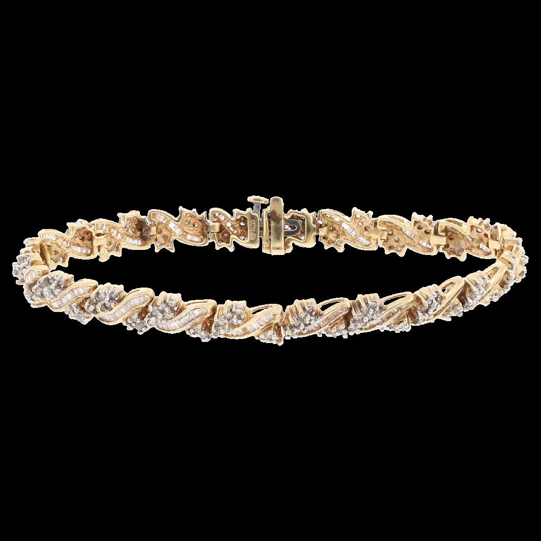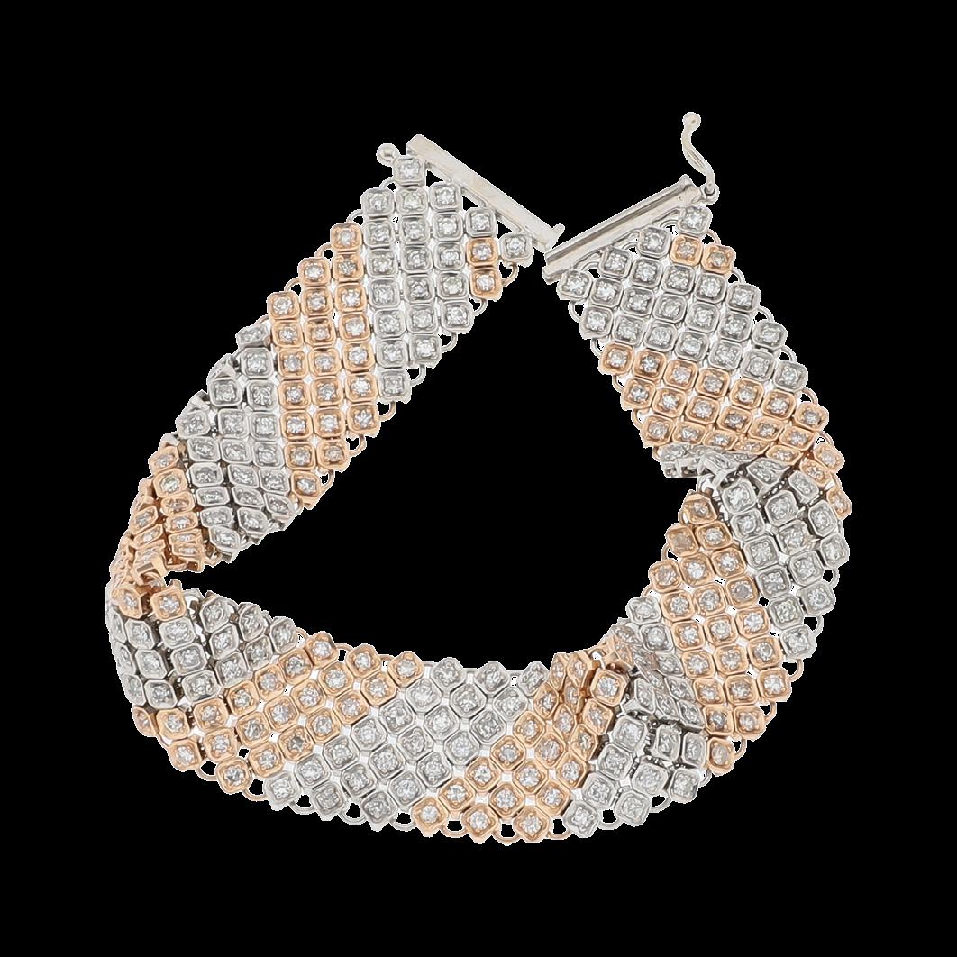 CONFECCIONADOS EN ORO AMARILLO/ BLANCO 18K, CON DIAMANTES MELEE 8.00 CTW, GRAMOS 24.9, CALIDAD Y PESOS APROXIMADOS