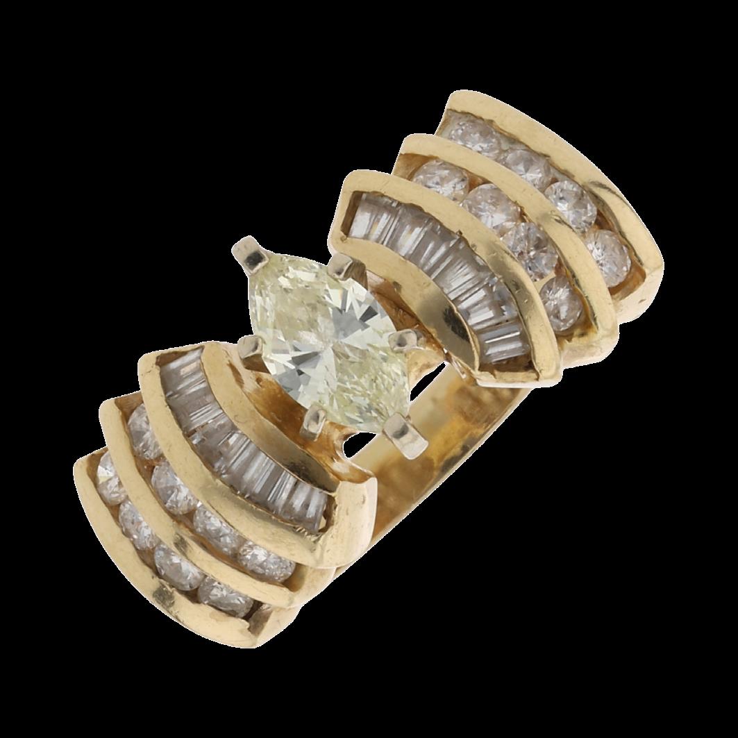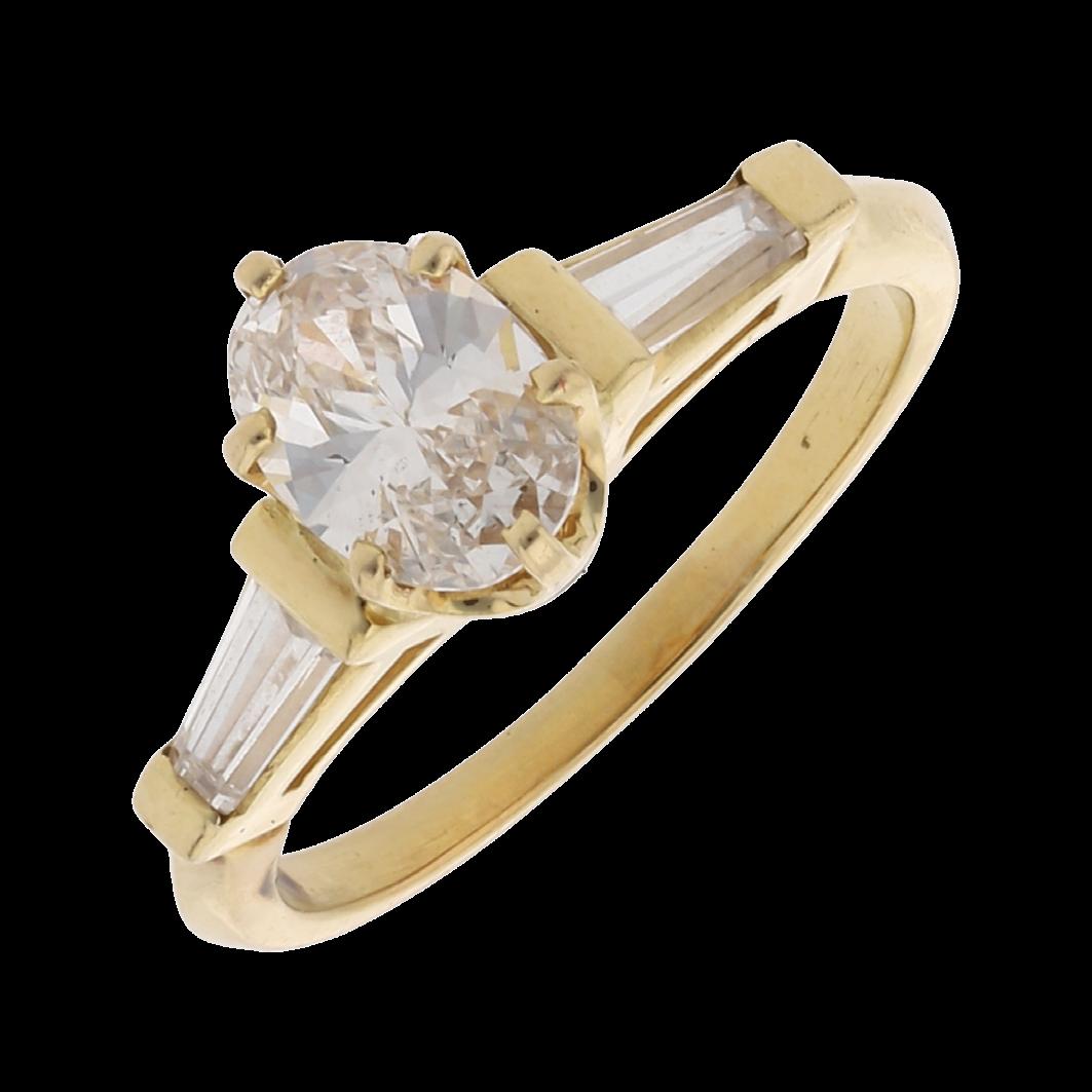 CONFECCIONADO EN ORO AMARILLO 14K, CON VISTAS PLATINADAS. BRILLANTE 1.60