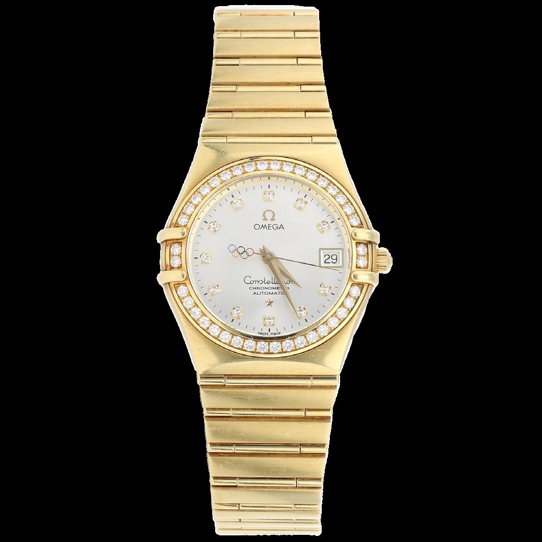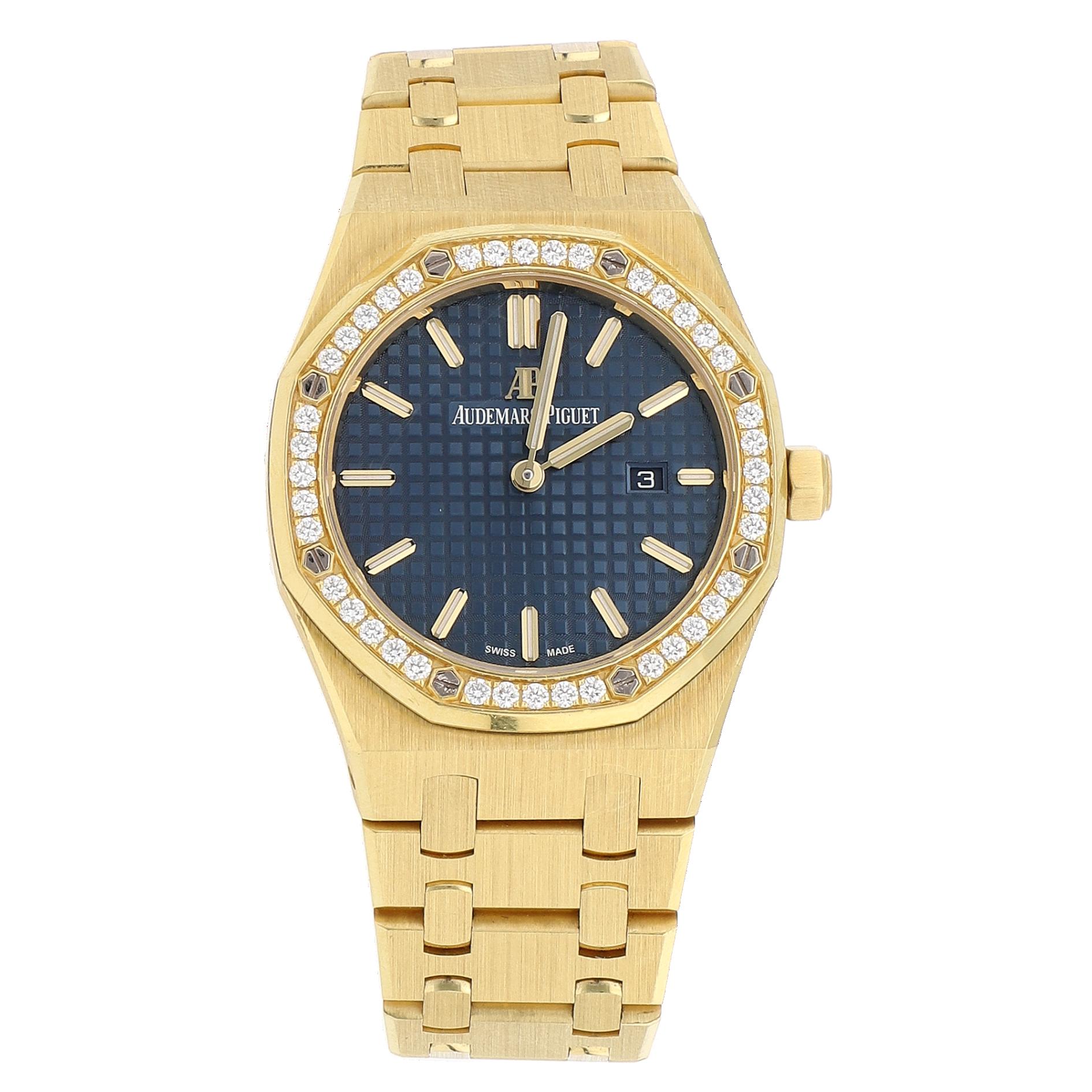 CAJA 33 MM Y PULSO ORO AMARILLO, CARÁTULA AZUL CON GRANDE TAPISSERIE SIN CIFRAS, BISEL CON BRILLANTES, MOVIMIENTO CUARZO, FUNCIONES: FECHADOR, SERIE J40XXX, CALIBRE 2713, JOYAS 7, GRAMOS 159.5, ESTADO DE CONSERVACIÓN BUENO, CON 3 ESLABONES EXTRAS Y EXTRACTO DE ARCHIVOS A.P.