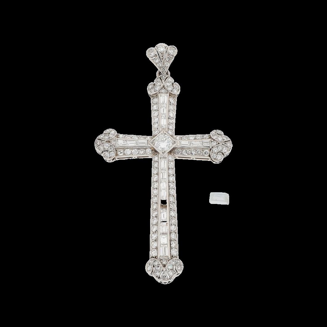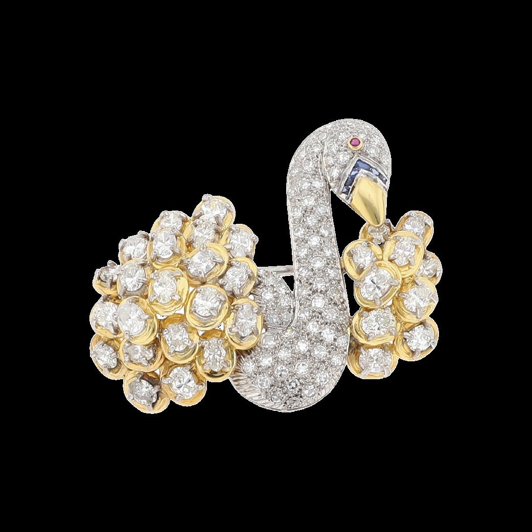CONFECCIONADO EN ORO AMARILLO 18K Y PLATA PALADIO, 40X45 MM, CON DIAMANTES TALLA OVAL 2.90 CTW (17X0.17) SI, I-K, DIAMANTES TALLA PRINCESS 1.80 CTW (14X0.128) SI, I-K, DIAMANTES MELEE 1.3 CTW, PESO TOTAL DIAMANTES 6.0 CTW, RUBIEE MELEE, GRAMOS 20.5, CALIDAD Y PESOS APROXIMADOS