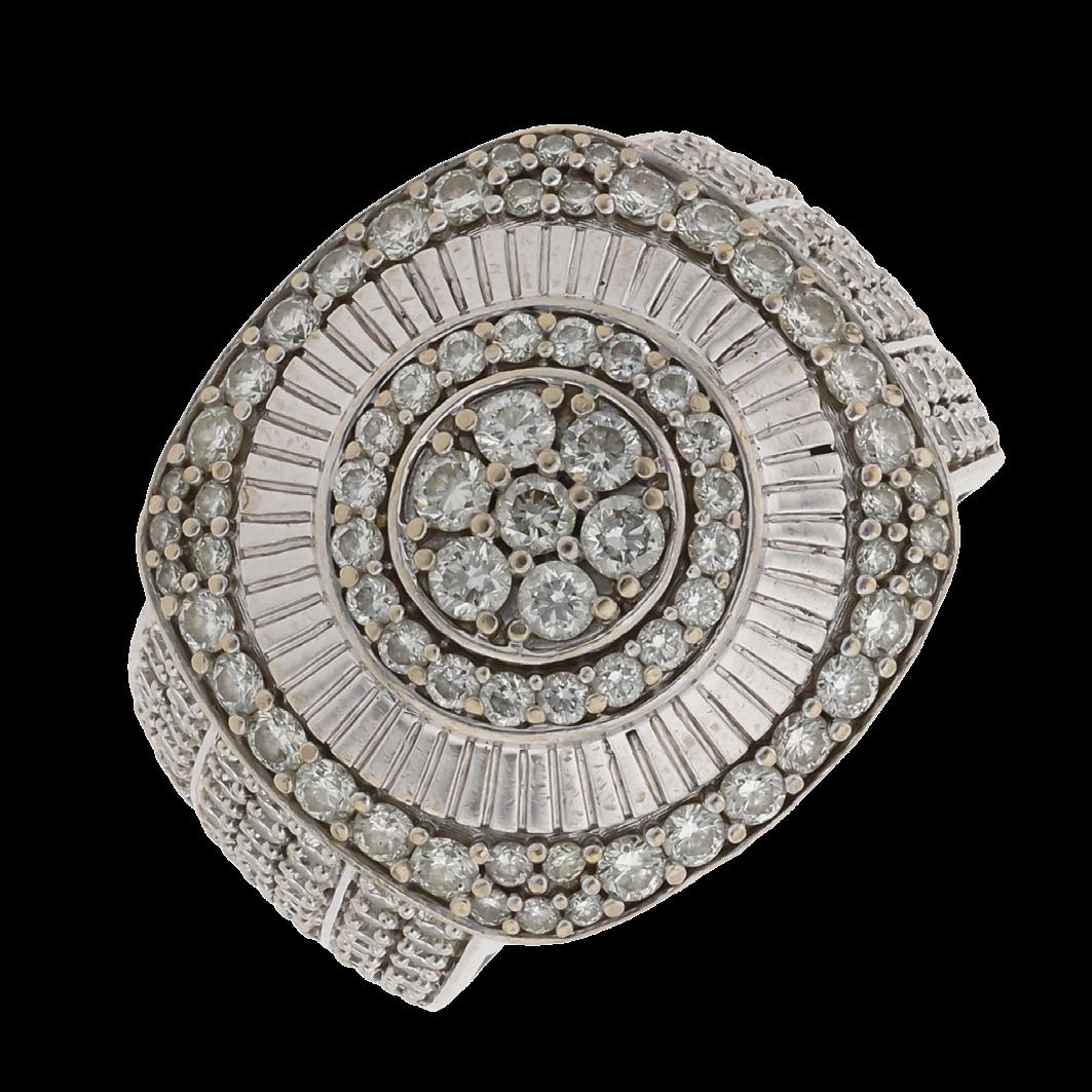 CONFECCIONADA EN ORO BLANCO 18K, CON BRILLANTES MELEE 1.70 CTW, CMS. 42.0, GRAMOS 57.6, CALIDAD Y PESOS APROXIMADOS