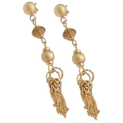 Par De broqueles confeccIonaDo en oro amarIllo 14k, con cuentas De cItrIno, gramos 6, calIDaD y Pesos aProxImaDos