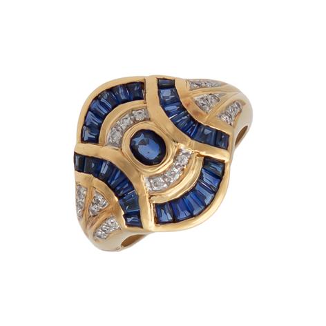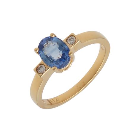 anIllo Para Dama confeccIonaDo en oro amarIllo 18k con zafIro central talla oval 1.0 cts brIllantes melee 0.05 ctw, meD. 6, gramos 3.1, calIDaD y Pesos aProxImaDos