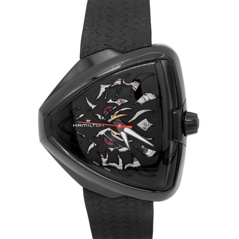 reloj Para caballero “HamIlton” *ventura elvIs 80 skeleton* referencIa H24535332 cIrca 2022 caja 42x45 mm acero PvD negro, Pulso caucHo, carátula skeleton, sIn cIfras, mov aut, serIe DH5gywxxx calIbre H-10-s y c07.611+, joyas 25. eDo De cons: bueno, en estucHe y PaPales
