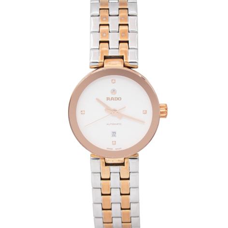 reloj Para Dama “raDo” *florence* referencIa r48900733 y/o 561.3900.2 caja 28 mm y Pulso en acero y acero PvD rosa, carátula PlateaDa, DIamantes en InDIcaDores, mov aut, comPlIcacIones: fecHaDor, serIe 15651xxx, calIbre 2671, joyas 25, gramos 66.0, eDo De cons: satIsfactorIo $6,500