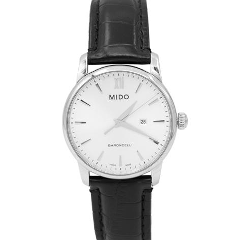 reloj Para Dama “mIDo” *baroncellI* referencIa mo13210 caja 33 mm en acero, Pulso PIel, carátula PlateaDa, mov cuarzo, comPlIcacIón: fecHaDor, serIe 11bg0319xxx, calIbre f03.111, joyas 3, gramos 37.6, estaDo cons:ervacIón bueno