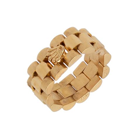 argolla Para caballero fIrmaDa “tIffany & c0.” confeccIonaDo en oro amarIllo, meD. 10, gramos 10.1, calIDaD y Pesos aProxImaDos