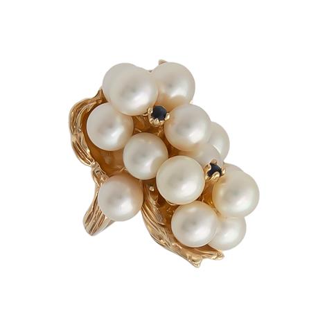 juego De aretes y anIllo confeccIonaDo en Plata PalaDIo con 5 Perlas DIversos tamaños (10.5, 8.6,8.7,7-8, 7.7 mm) DIamantes melee 0.64 ctw. grs 18.3. calIDa y Pesos estImaDos